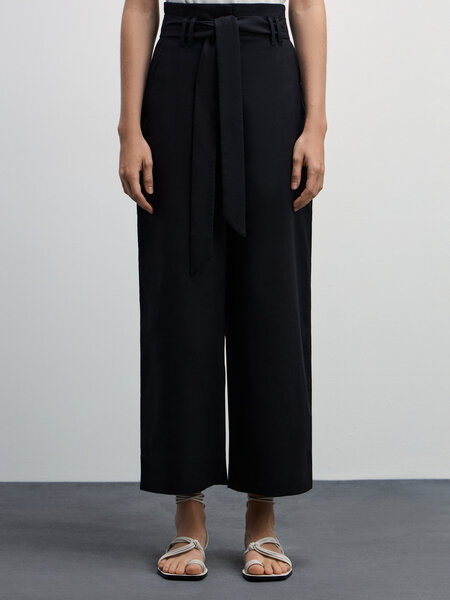 Отзывы на Zarina Брюки кюлоты изо льна, цвет Черный, размер S (RU 44), 4327334734-50