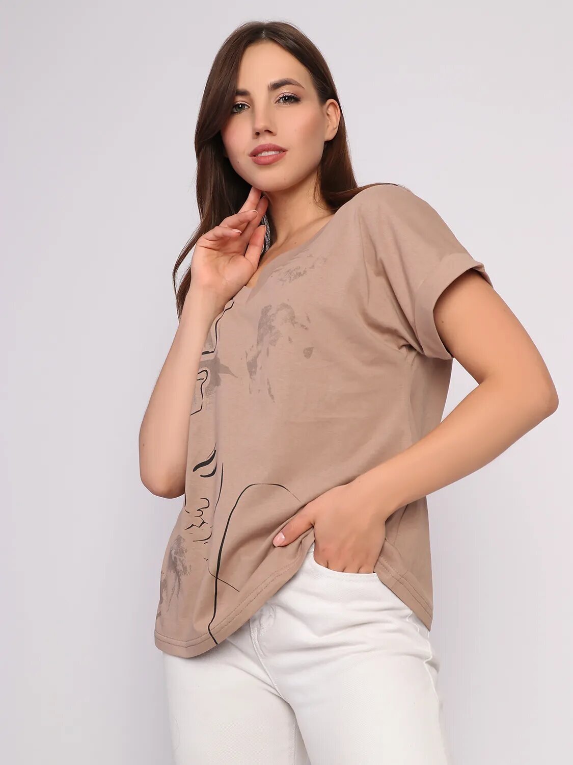 Футболка женская ТЕТ-А-ТЕТ кулирка светло-коричневый (46RU)