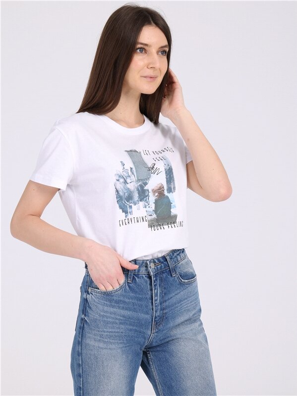 Футболка женская белая с принтом хлопок 100% Апрель 1ЖДФК2657001/1190/31/*/2732/*/*/*/1 белый 96-164 492 ₽