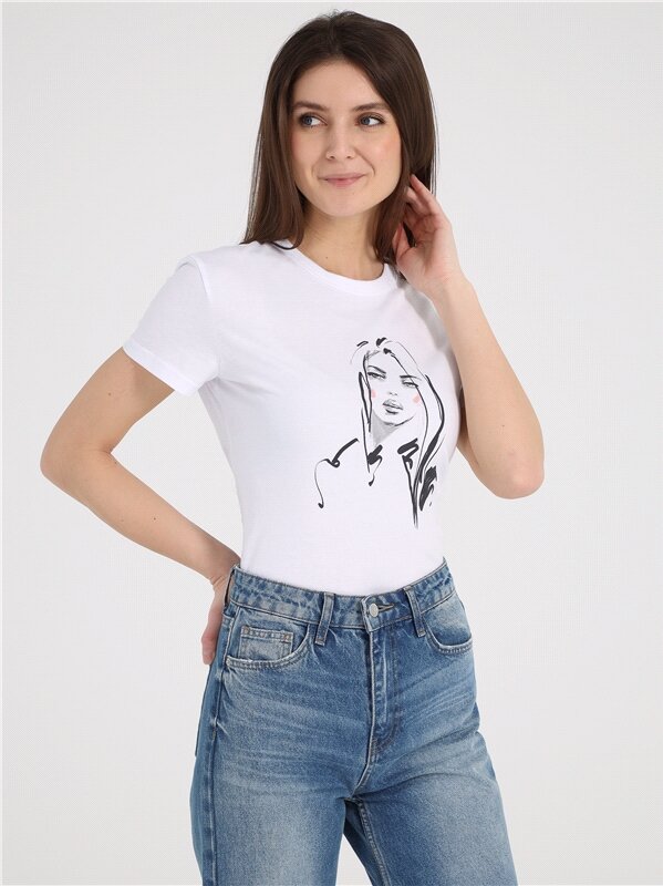 Футболка женская белая с принтом хлопок 100% Апрель 1ЖДФК2657001/1190/31/*/2732/*/*/*/1 белый 96-164 информация:
