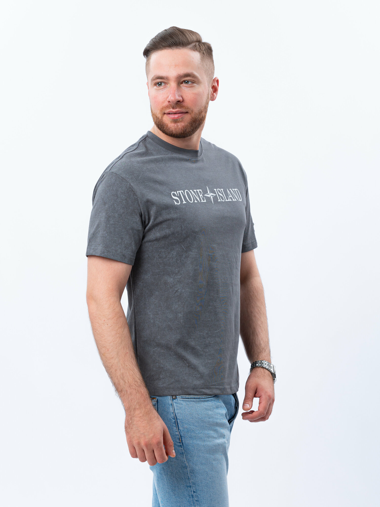 Футболка мужская серая с принтом 746 4 размер M (46) STONE ISLAND 2 000 ₽