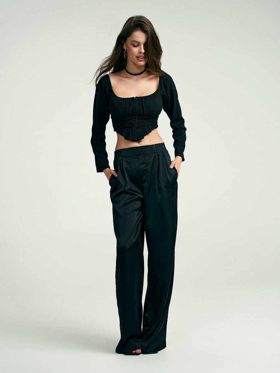 Отзывы на Короткий кроп-топ с длинным рукавом и открытыми плечами твое, арт. B3351,черный,XS