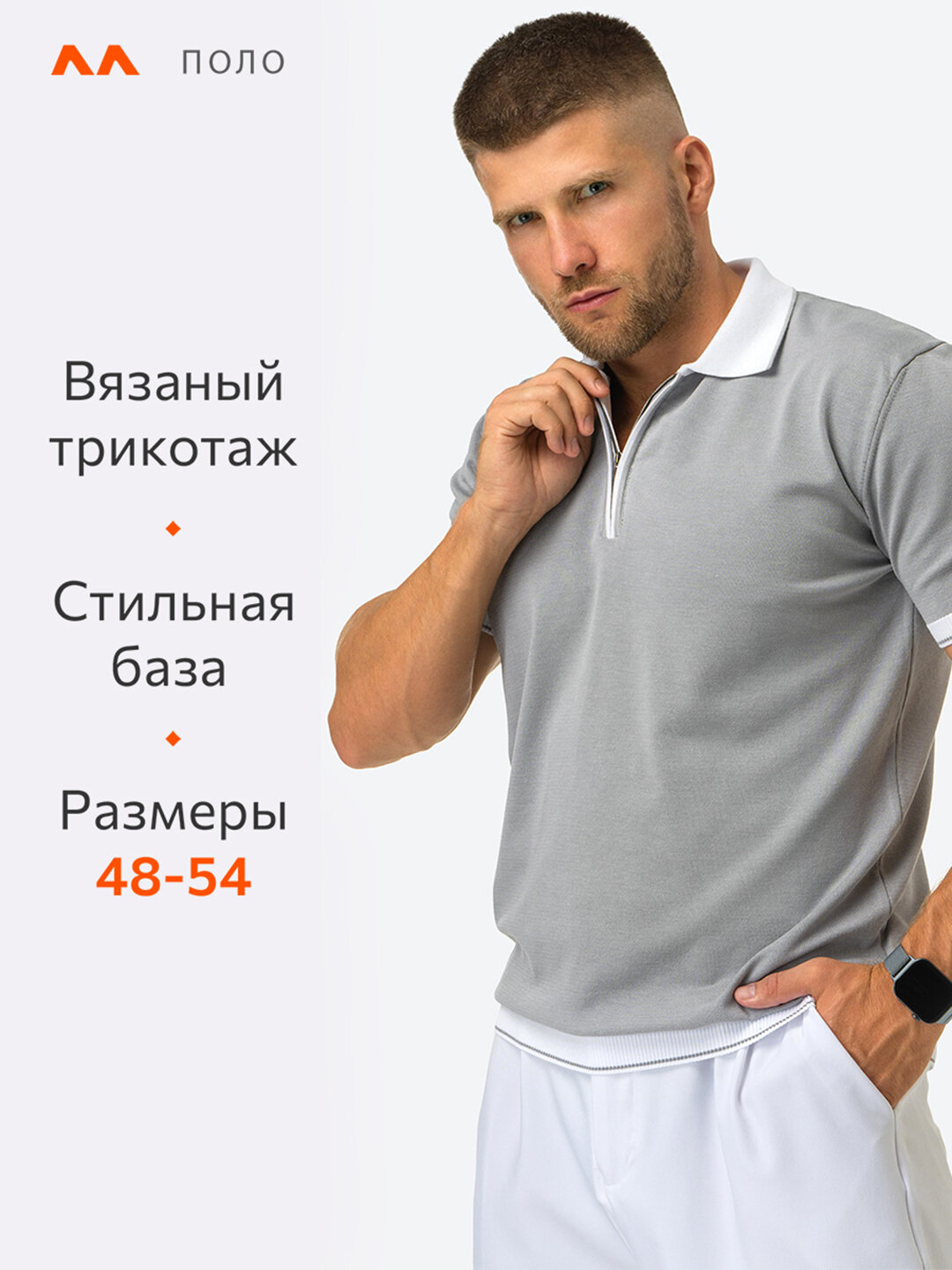 Отзывы на Футболка поло мужская вязаный трикотаж HappyFox HF14005 серый.белый 54