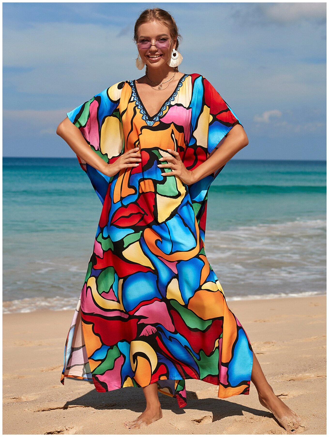 Отзывы на Туника пляжная яркая разноцветная. Разноцветная. Длинна 140. Размер 44-52