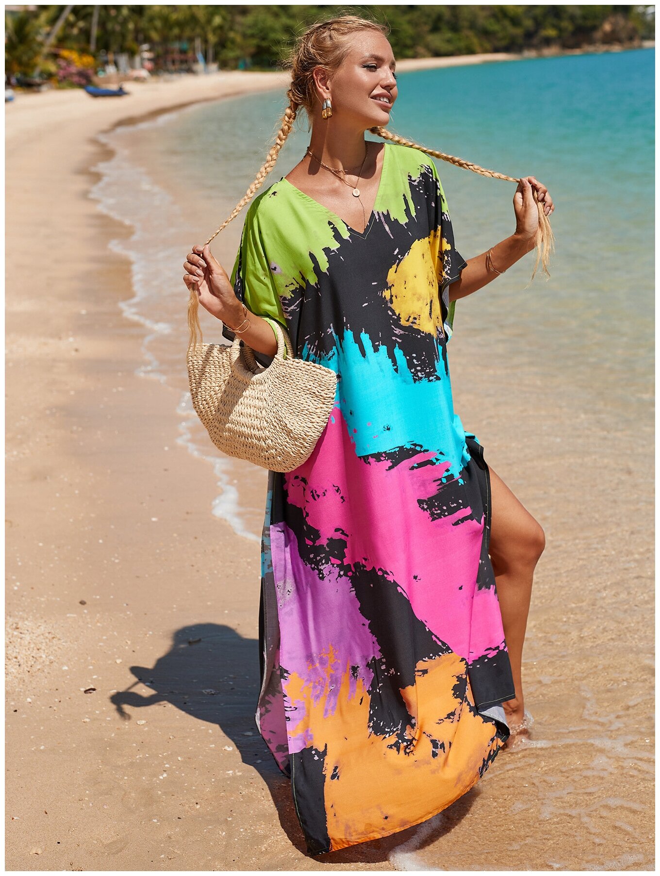 Туника пляжная яркая разноцветная. Разноцветная. Длинна 140. Размер 44-52