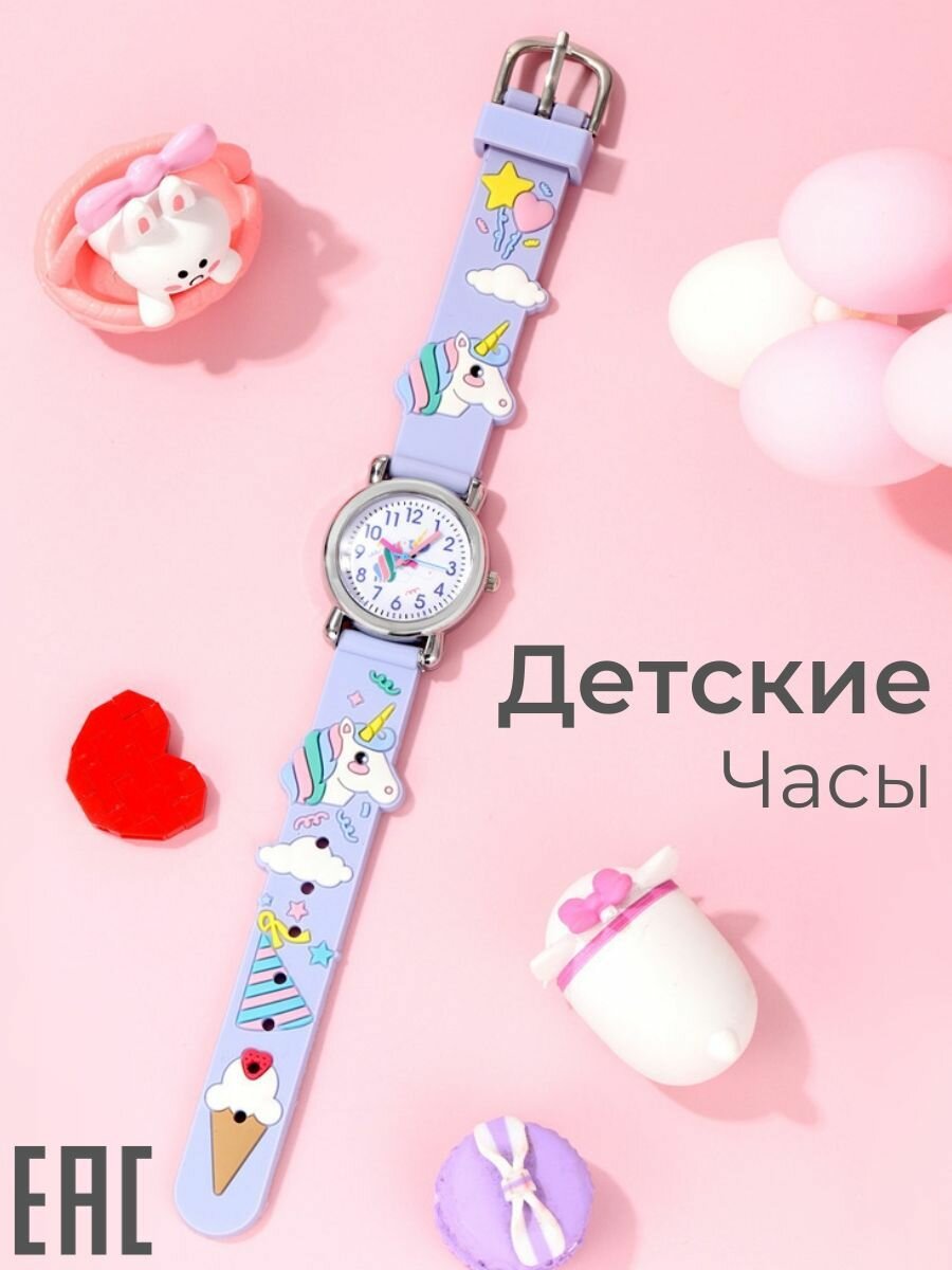 Детские часы наручные со стрелкой для девочки Единороги, сиреневый цвет информация: