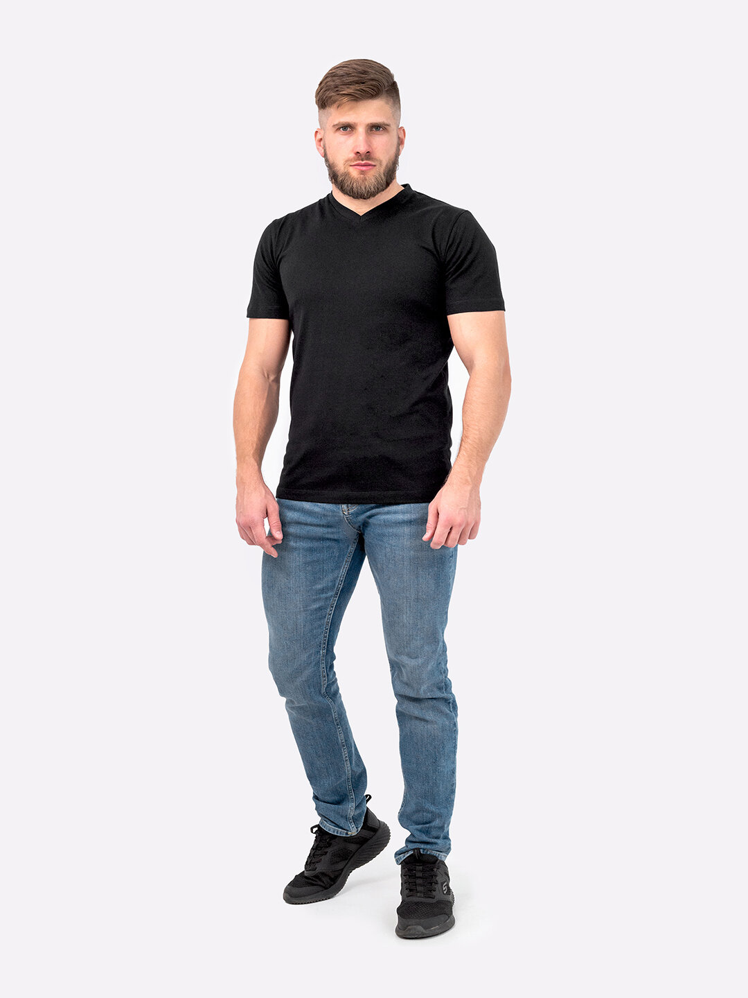 Однотонная футболка мужская базовая с v-образным вырезом HappyFox, HF9124 размер 48, цвет черный информация: