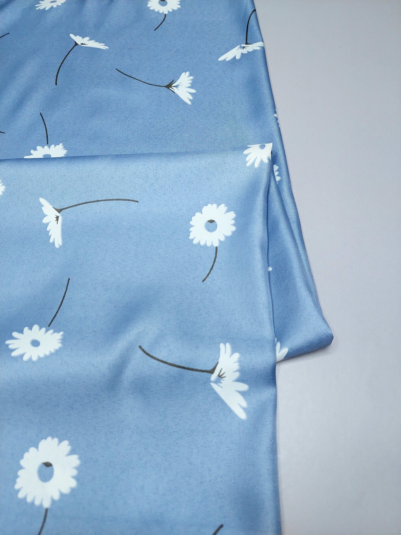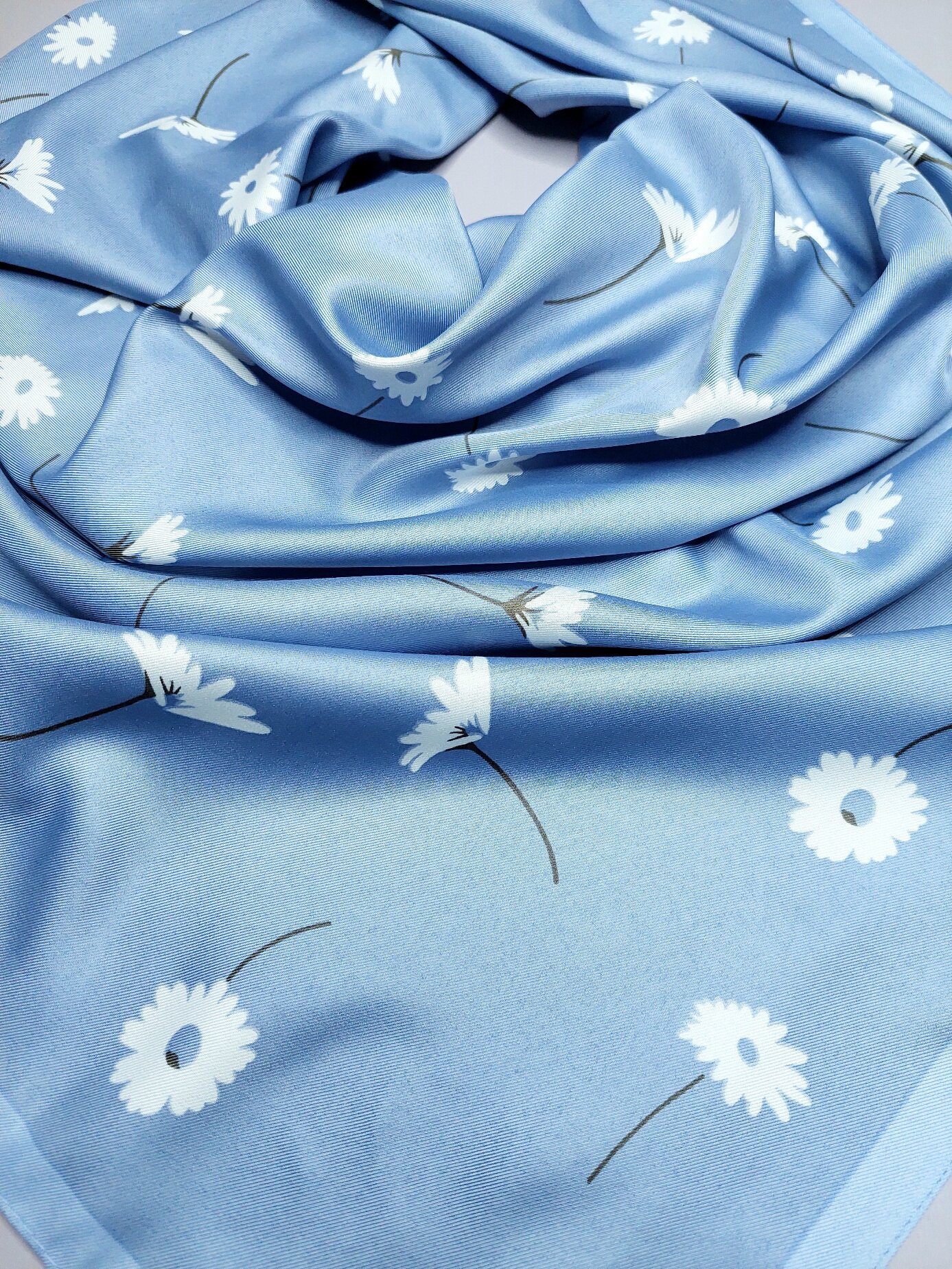 10 цен на Платок женский шелковый Ромашки синий