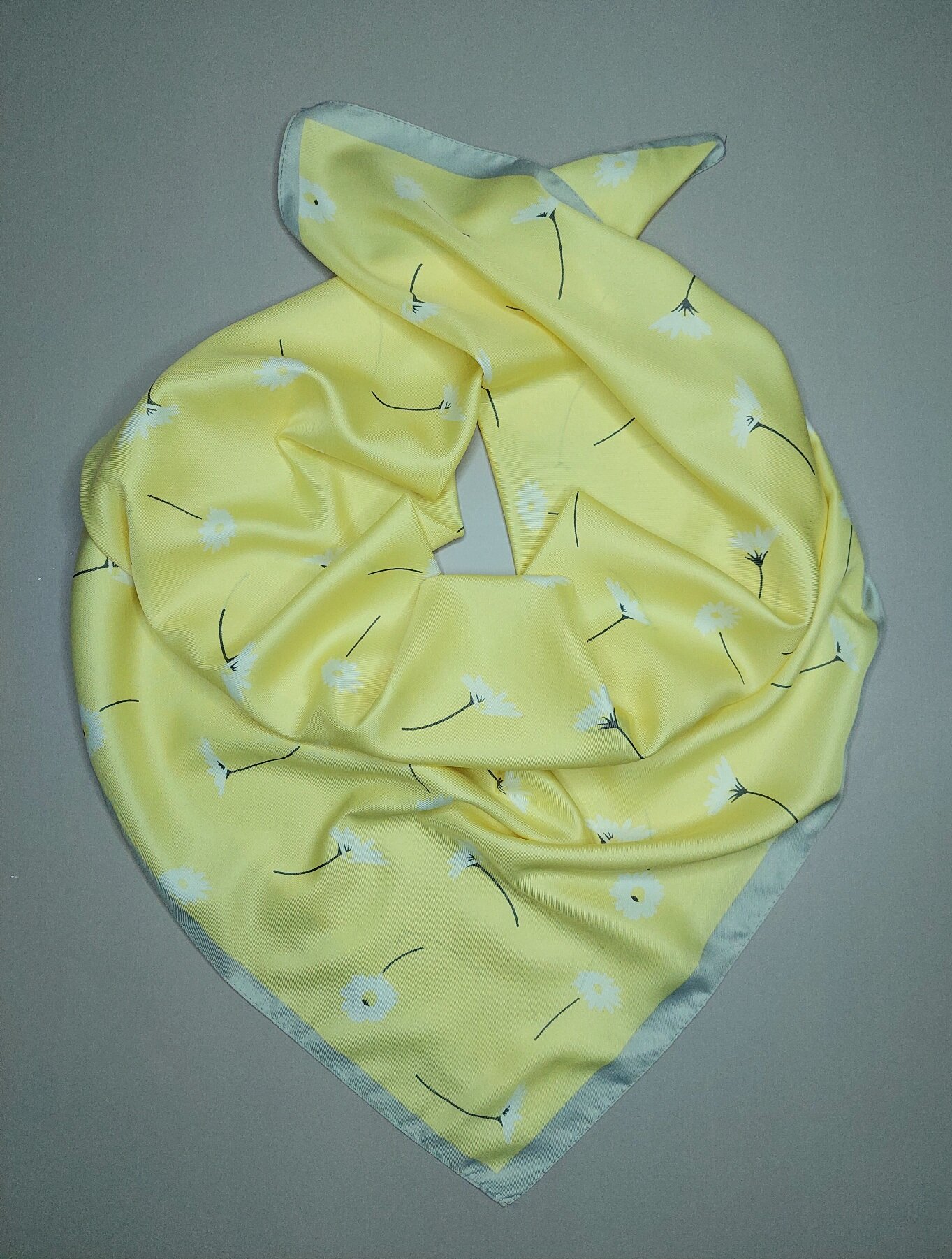 Платок женский шелковый Ромашки светло-серый 779 ₽