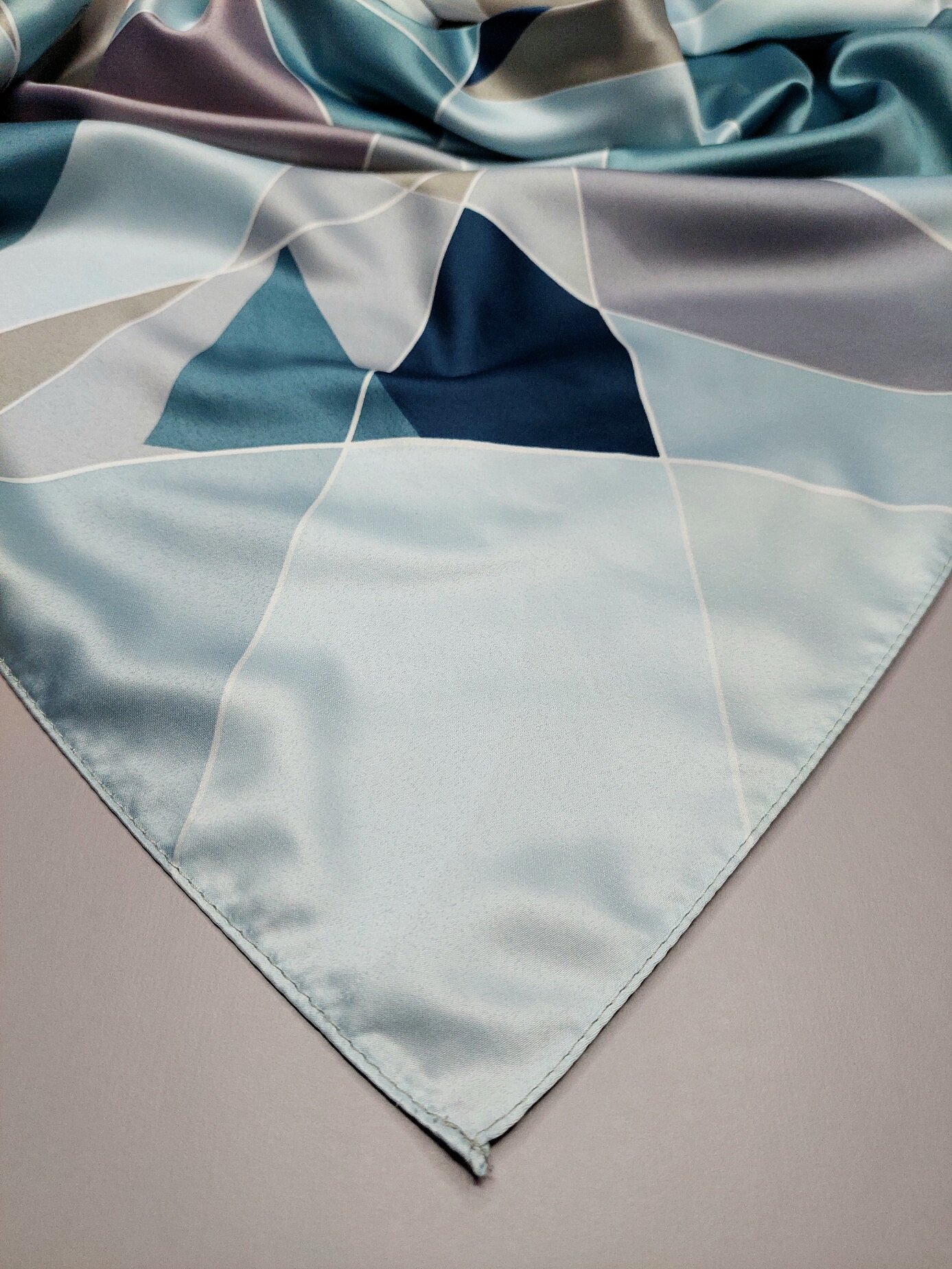 Платок шелковый Геометрия сине-коричневый 650 ₽