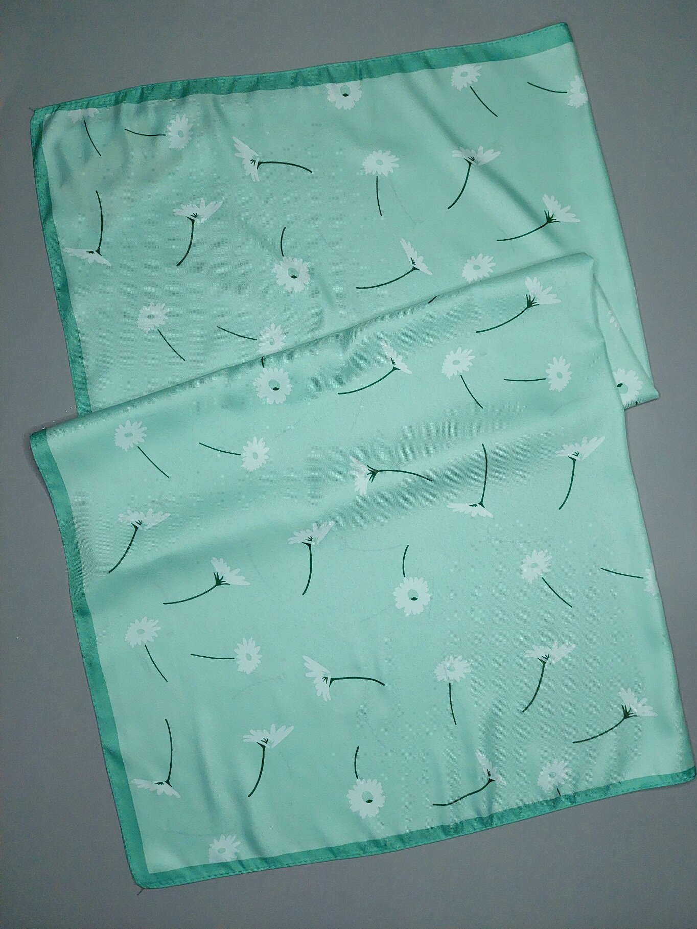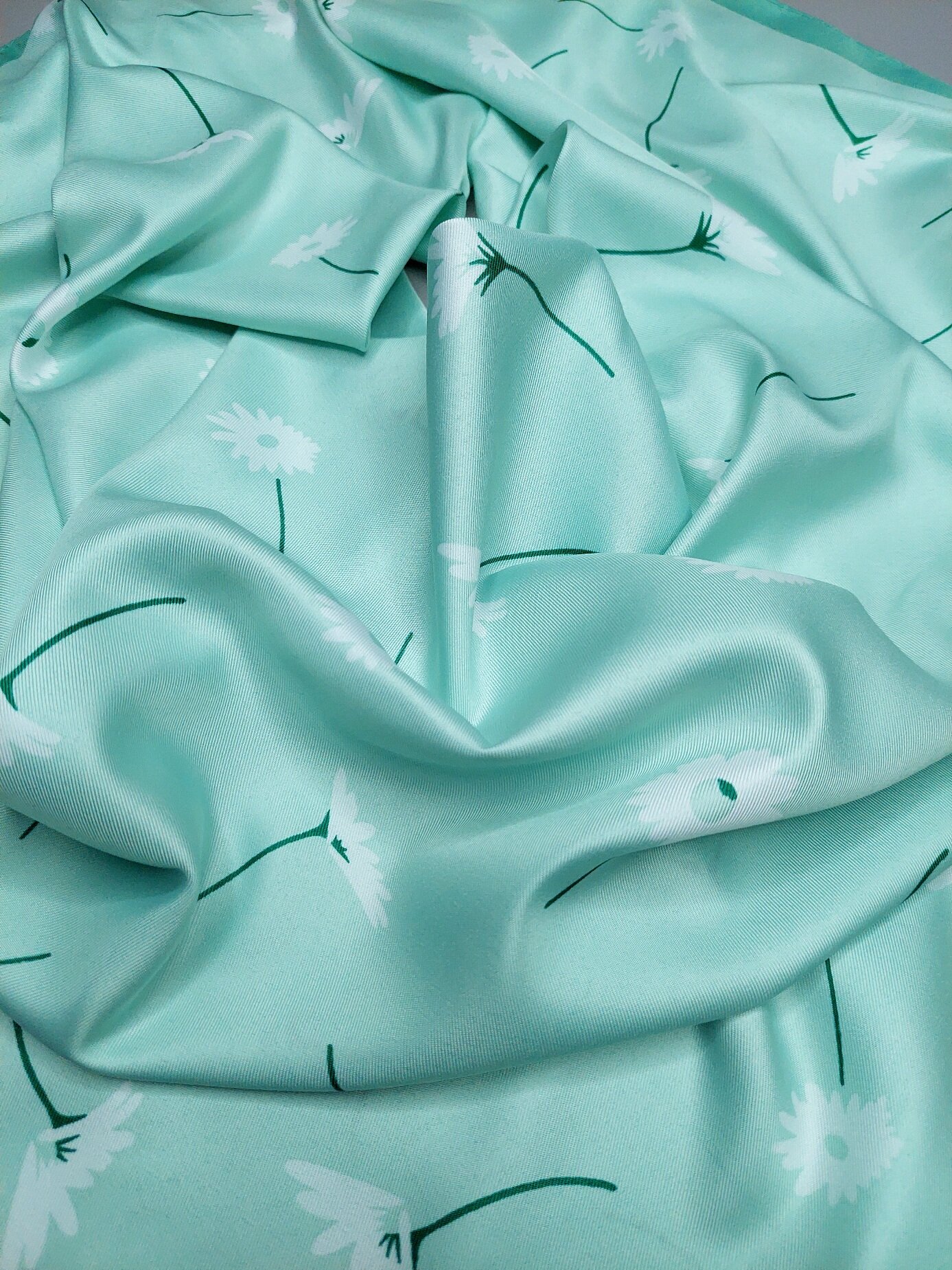 10 цен на Платок женский шелковый Ромашки салатовый