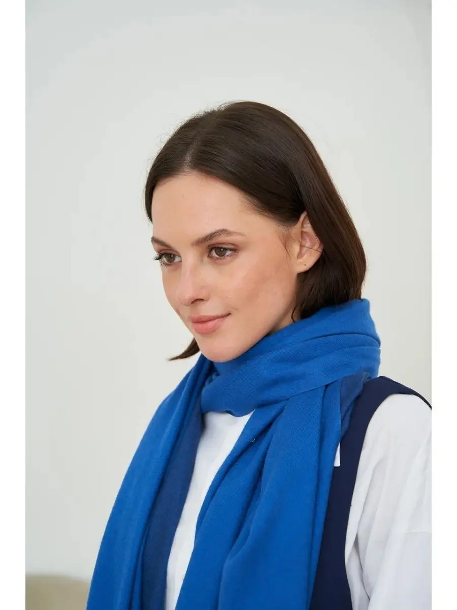 10 цен на Шарф теплый палантин кашемир двухсторонний синий