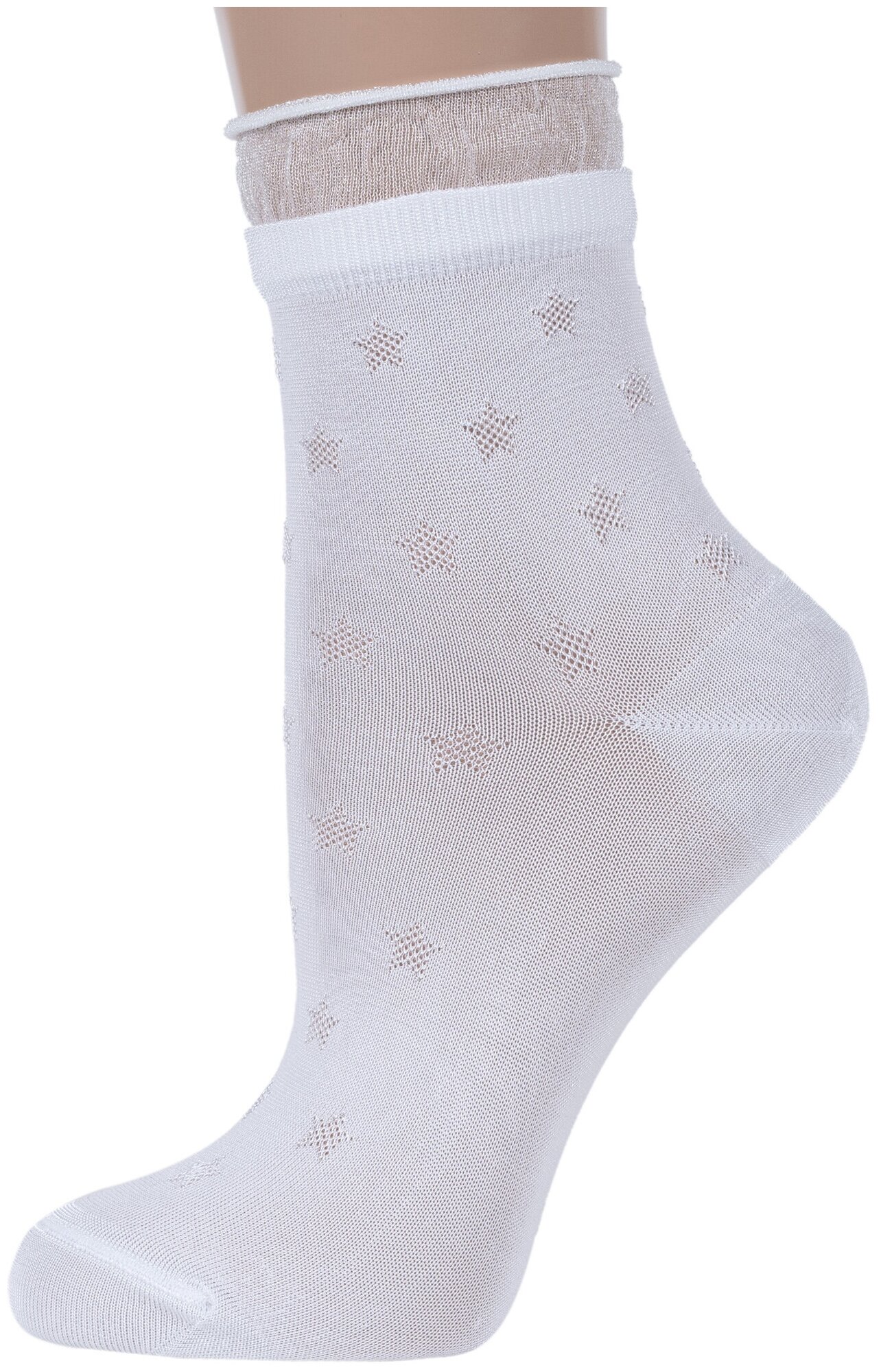 19С-189СП Женские носки из вискозы белые однотонные звезды укороченные сетка сеточка летние лето конте пара рис. 491
