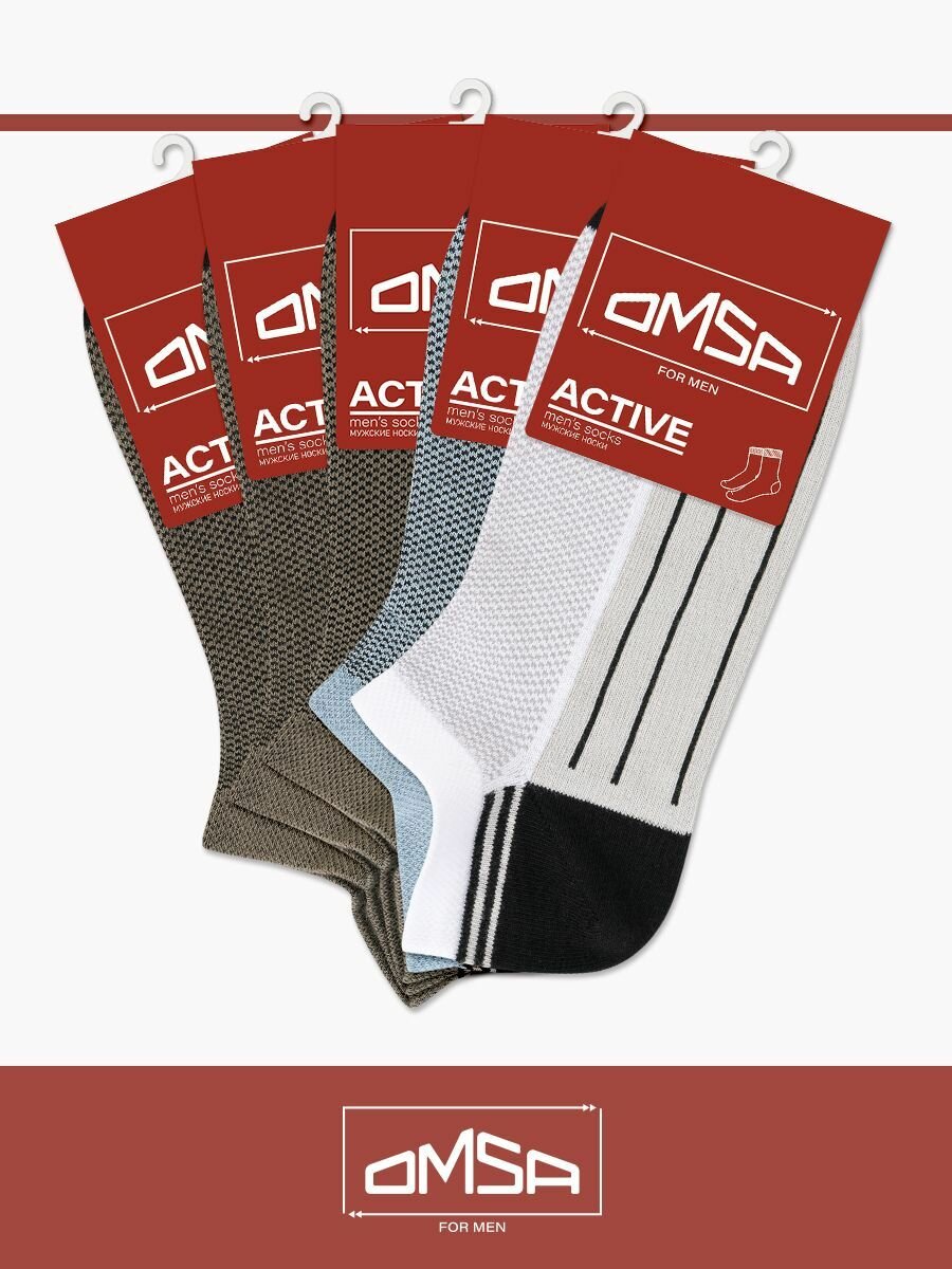 10 цен на Носки мужские, OMSA ACTIVE 109, короткие, с рисунком, с принтом, из хлопка, Blu Сhiaro/Grigio Chiaro/3Militari 39-41, набор – 5 пар