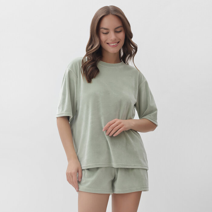 Костюм женский (футболка и шорты) KAFTAN Plushy р. 48-50, зеленый информация: