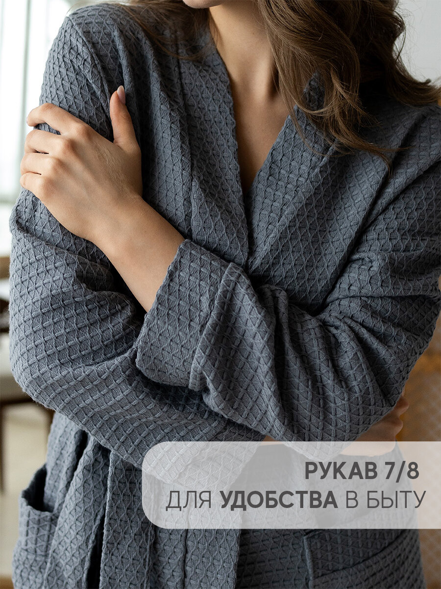 Халат вафельный женский банный серый домашний 100% хлопок информация:
