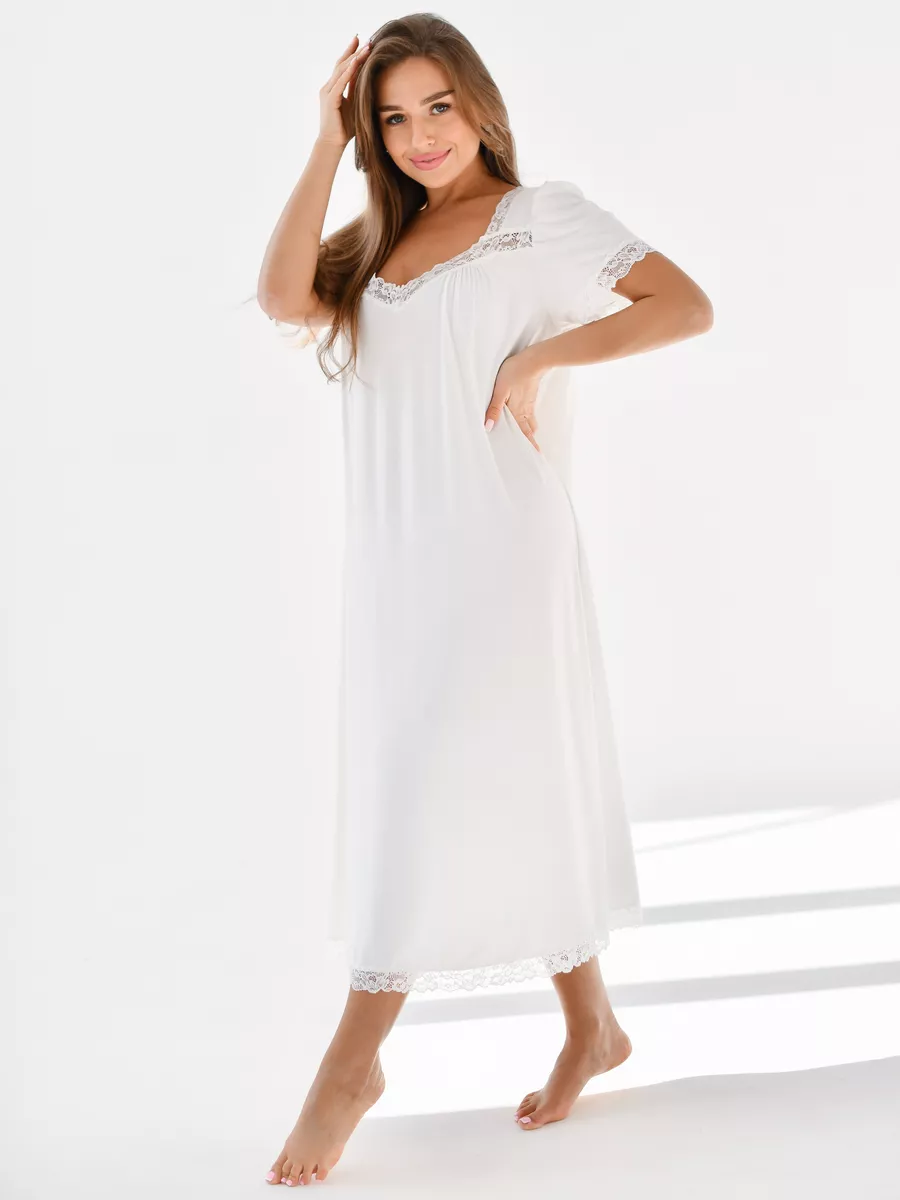 Женская ночная сорочка Анастасия, размер 48, цвет белый, с рукавом, и кружевом. Текстильный край. 2 682 ₽