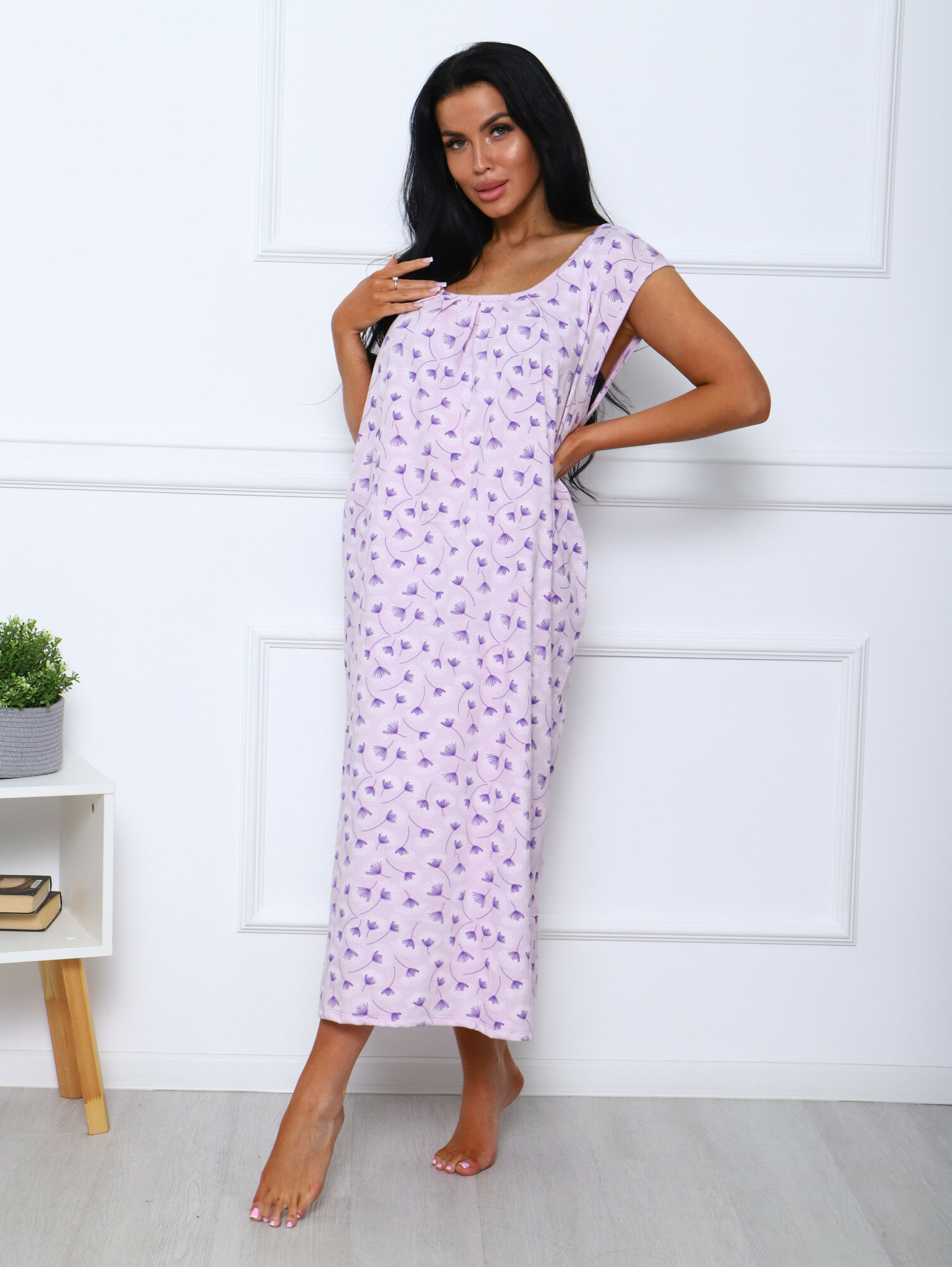 10 цен на Сорочка Дарья сирень 70 / Ночная сорочка больших размеров / Одежда для сна / Ночная сорочка трикотаж / Домашний трикотаж большого размера