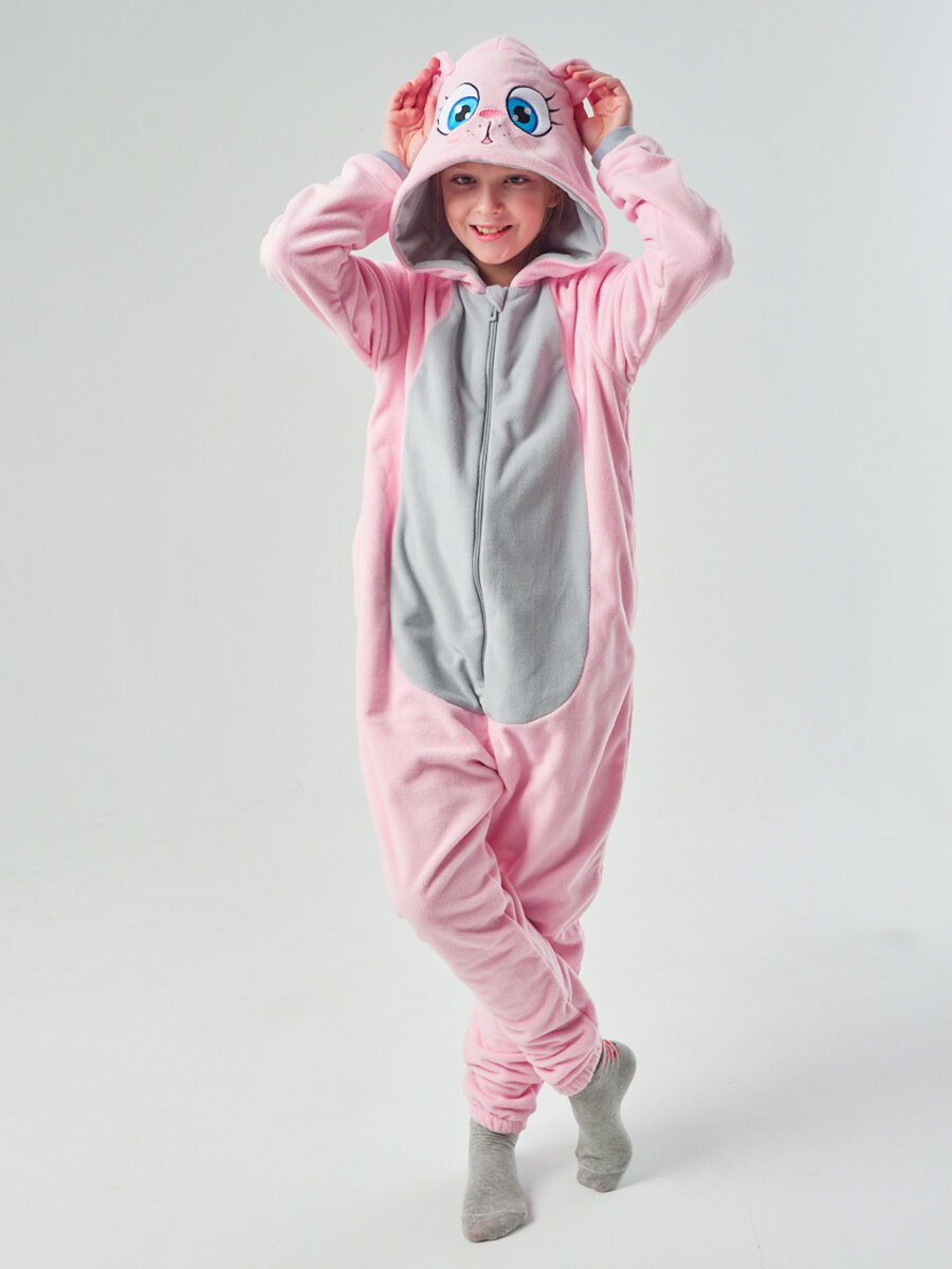 Кигуруми Wesen "Котик нежный" арт. 21005, цвет: светло-розовый, серый, размер XS