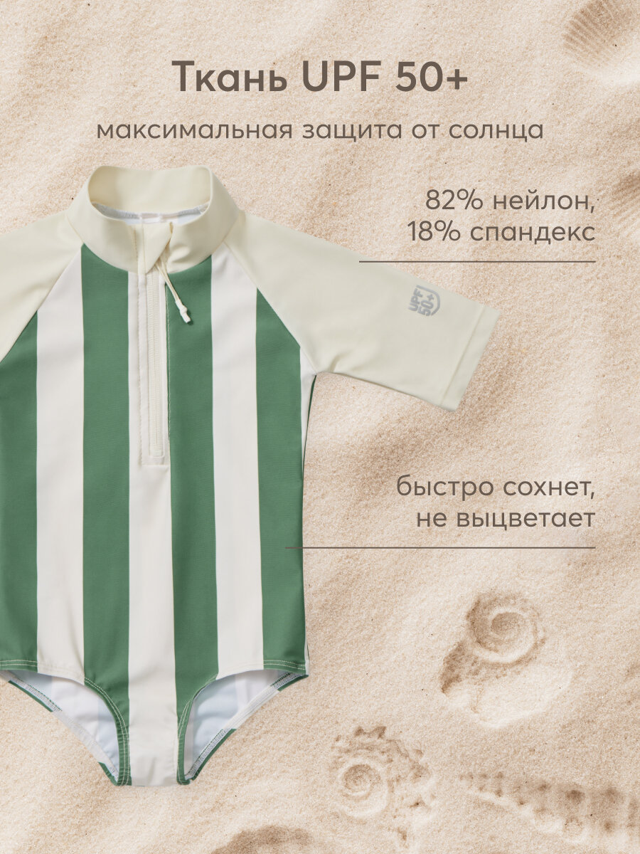 50657, Купальник слитный детский для девочек, защита от солнца UPF 50+ Happy Baby с длинным рукавом, на молнии, солнцезащита, зеленый в полоску, 116-122 информация: