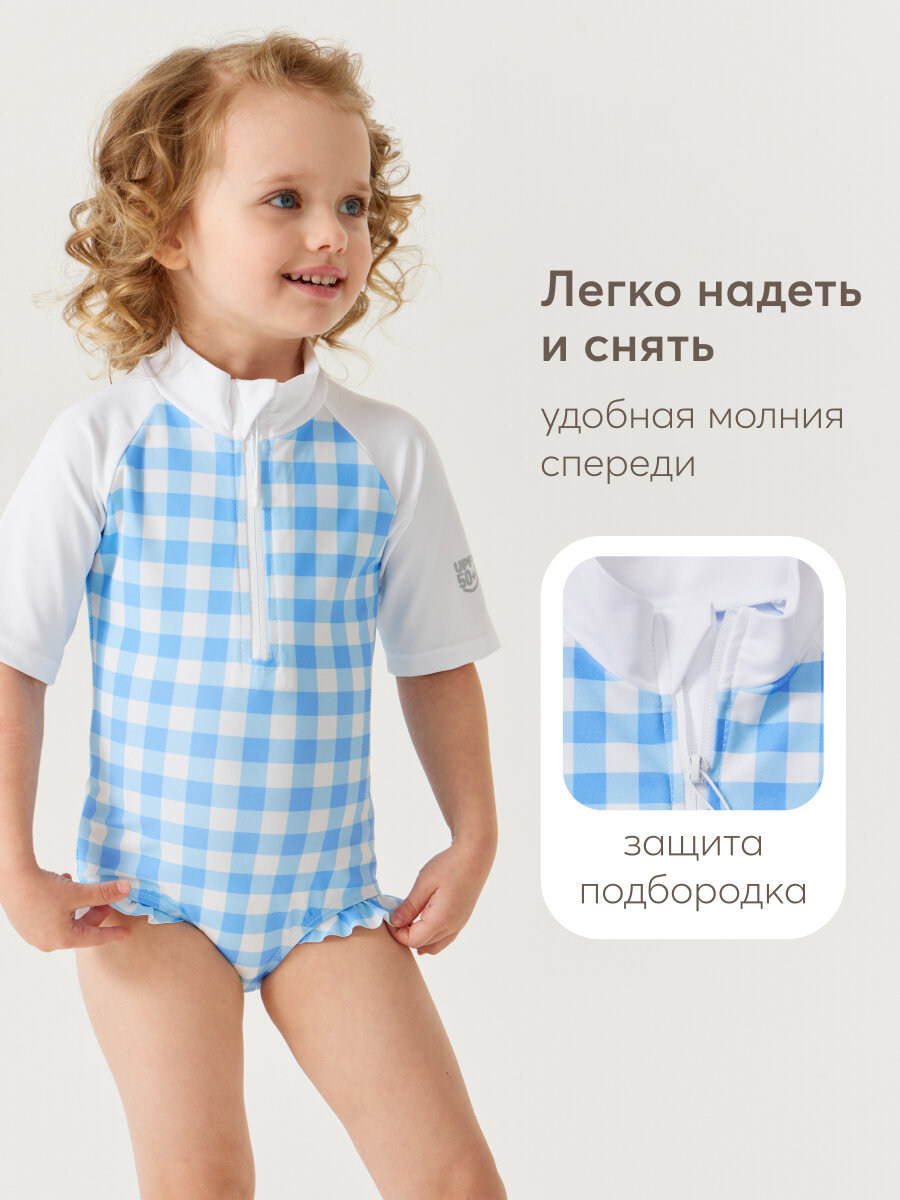 50657, Купальник слитный детский для девочек, защита от солнца UPF 50+ Happy Baby с длинным рукавом, на молнии, солнцезащита, голубой в клетку, 80-86 1 740 ₽