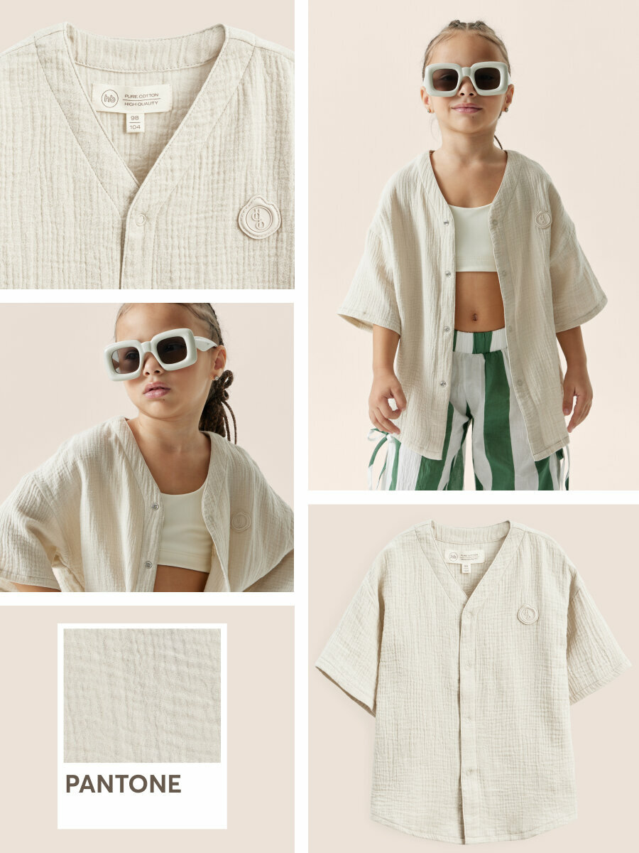 88130, Рубашка детская хлопковая Happy Baby, рубашка для мальчика и для девочки летняя, детская одежда на лето, бежевая, размер 86-92 1 553 ₽