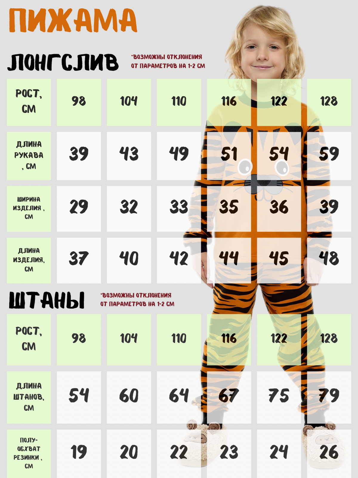 10 цен на Пижама с начесом, оранжевый тигр, размер 110