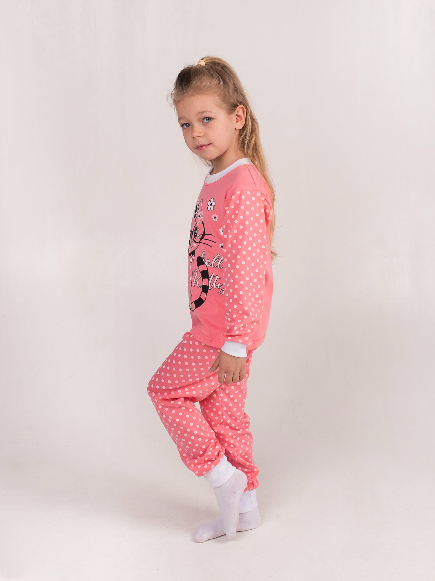 Хлопковая пижама без начеса, розовый, кошка, размер 104 690 ₽