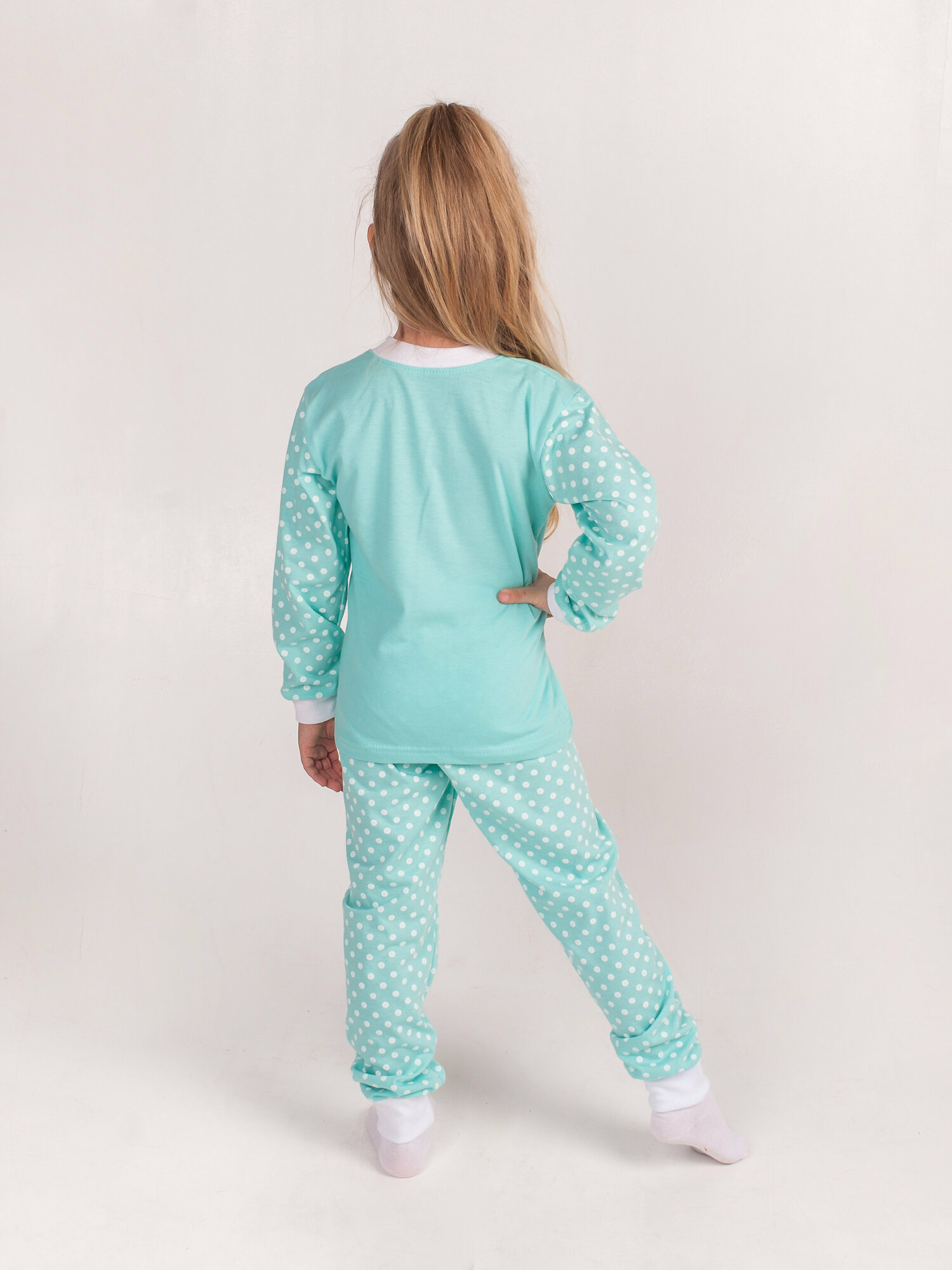 Хлопковая пижама без начеса, мятный, кошка, размер 128 информация: