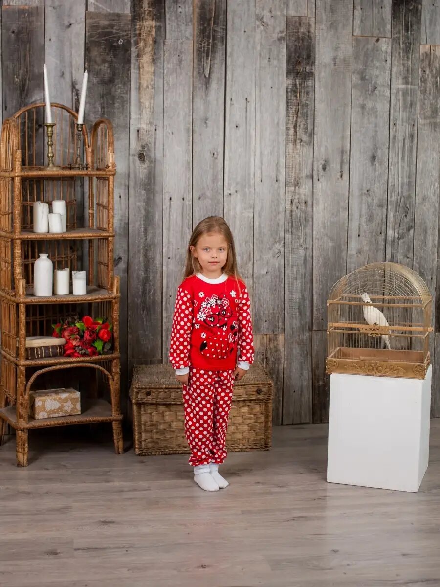 Хлопковая пижама без начеса, Дети в Цвете, цвет красный, размер 110 информация: