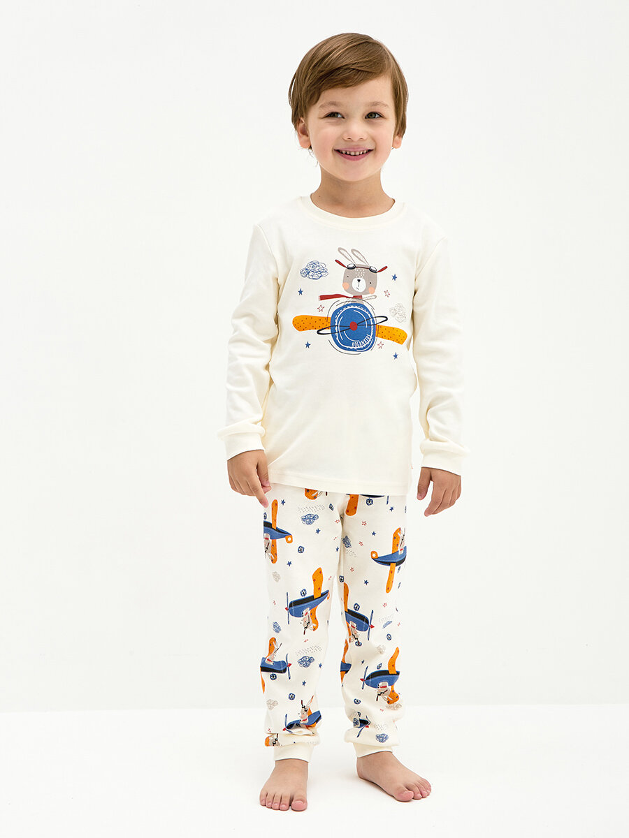 Пижама для мальчика,KOGANKIDS,молочный набивка самолётики, 128 / 8 лет информация: