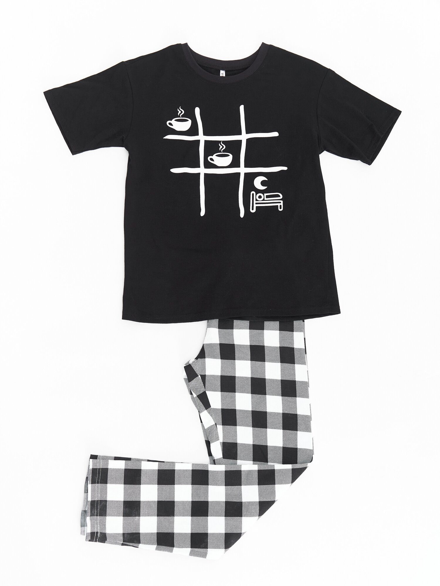 10 цен на Пижама в клетку для детей и подростков, брюки с футболкой размер 38, рост 152-158 см.