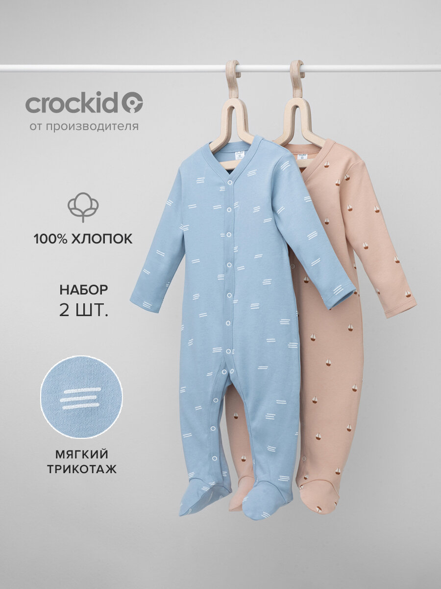 Комплект комбинезонов Crockid К 6025-2уп/пекарня р 44/68 для мальчика из натурального хлопка 1 670 ₽