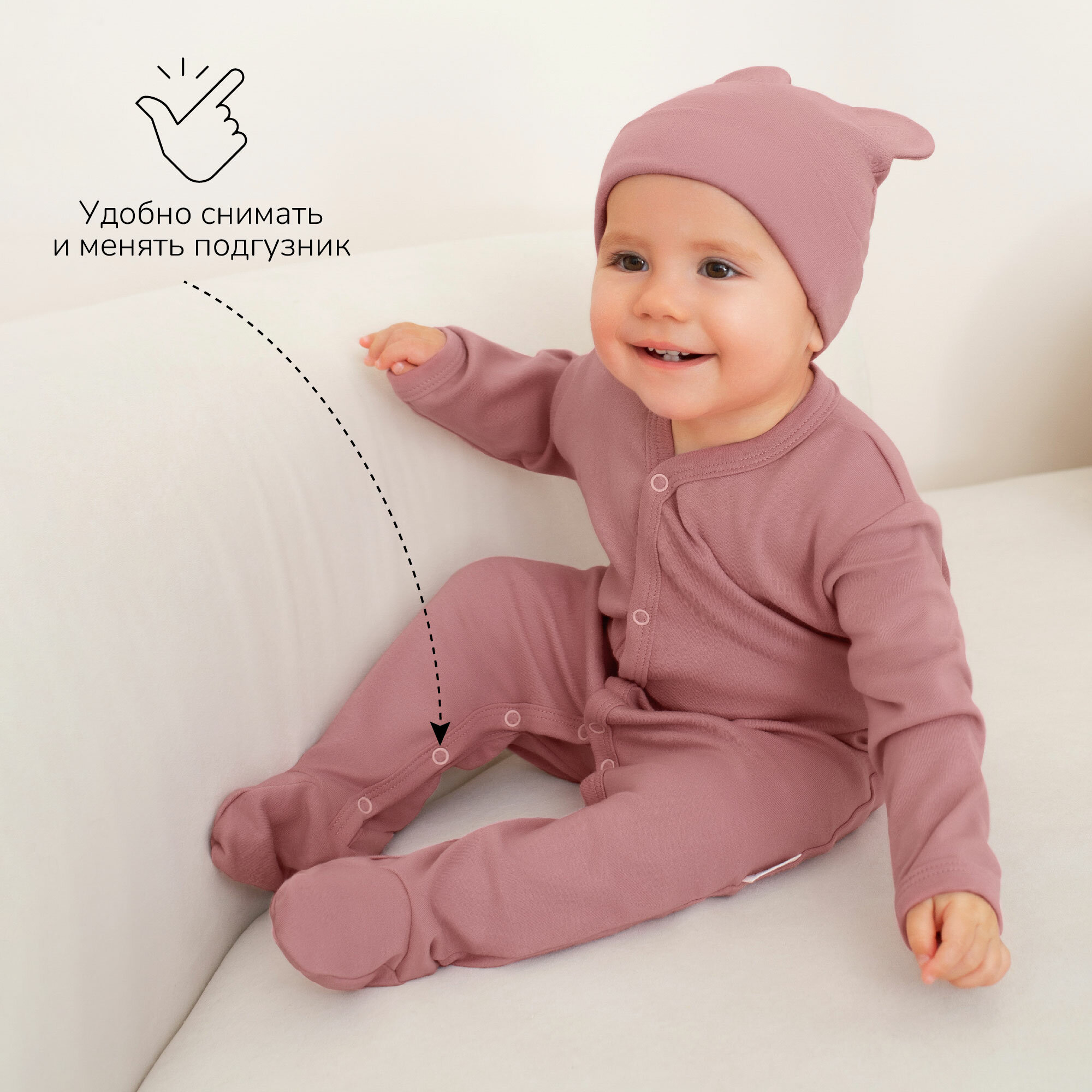 Комплект комбинезонов (слипов) детских с шапочкой Amarobaby Nature, розовый, сердечки, размер 80 2 428 ₽