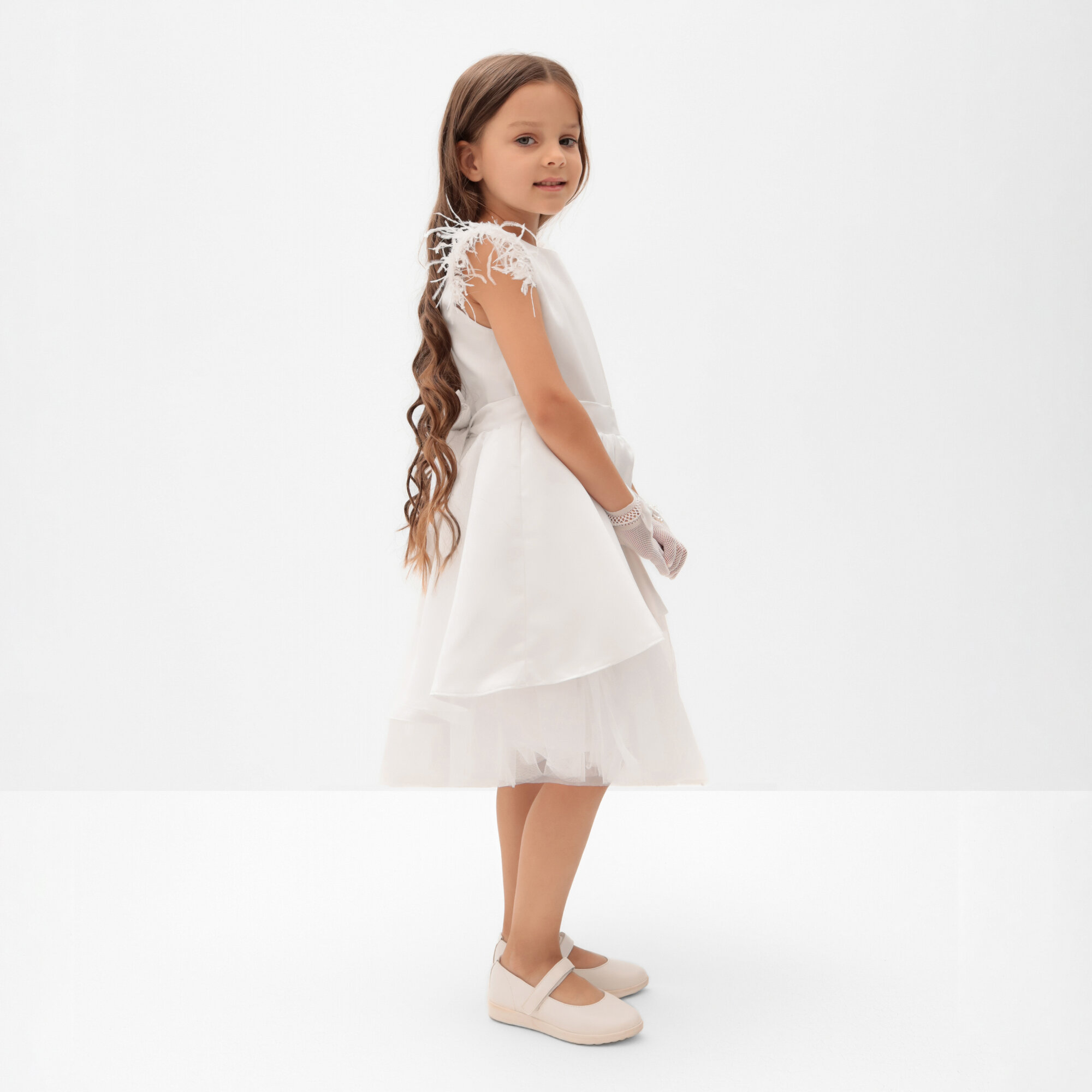 Платье нарядное детское KAFTAN, р.34 (122-128 см), белый 3 354 ₽