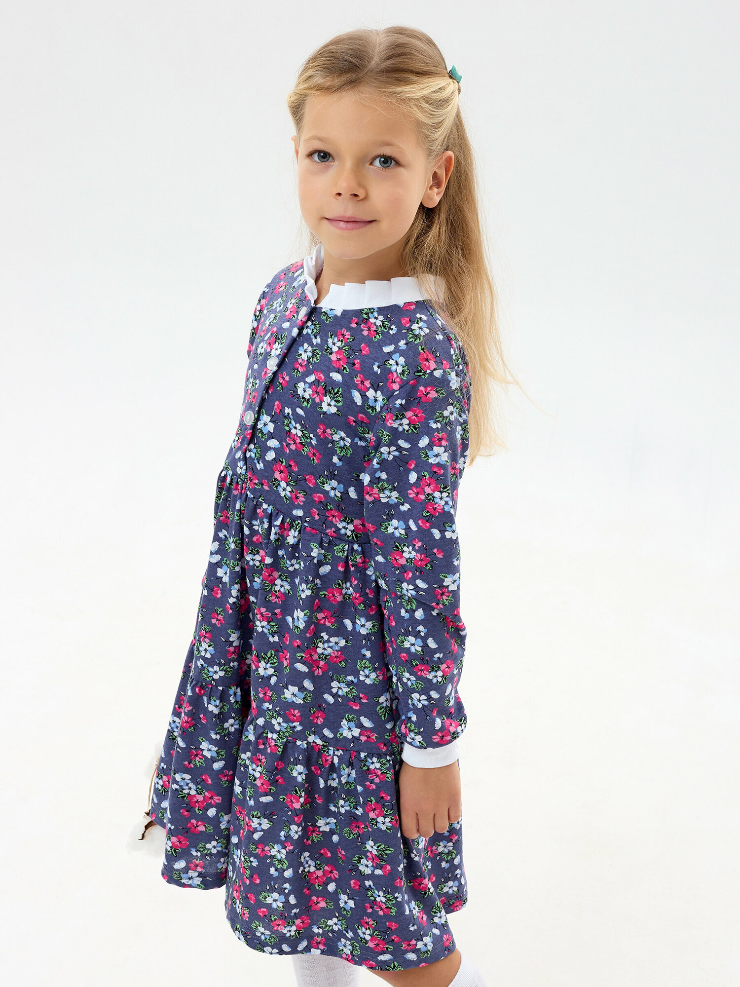Легкое платье с длинным рукавом, фиолетовая полянка, размер 122 585 ₽