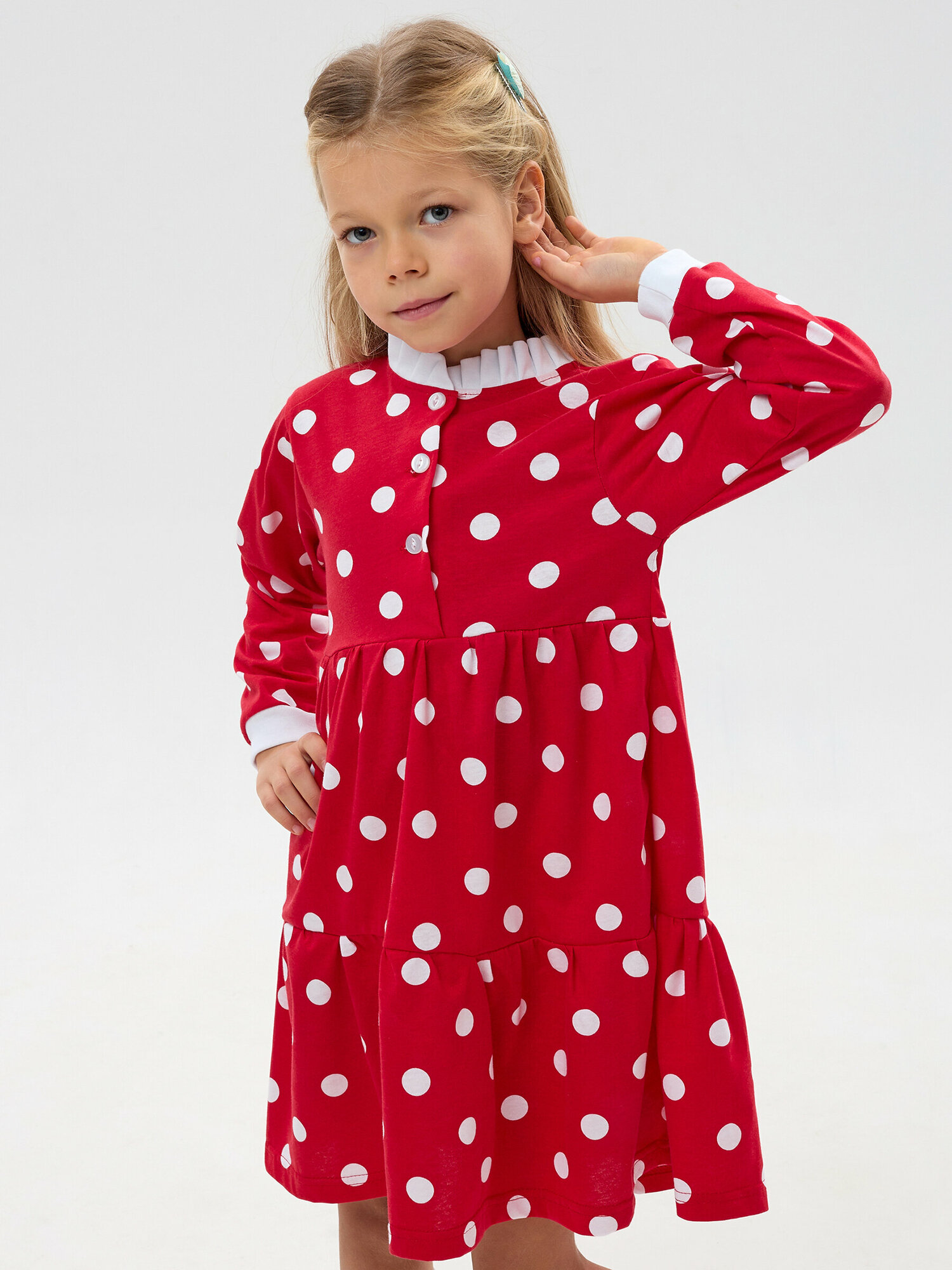 Легкое платье с длинным рукавом, красный, горох, размер 128 695 ₽
