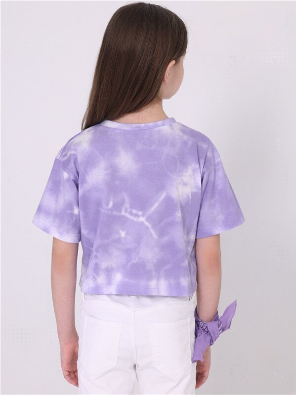 Футболка для девочки укороченная с принтом хлопок Апрель 1ДДФК4346001н/1358/*/5126/3409/*/*/* фиолетовый,белый,зеленый 72-140 501 ₽