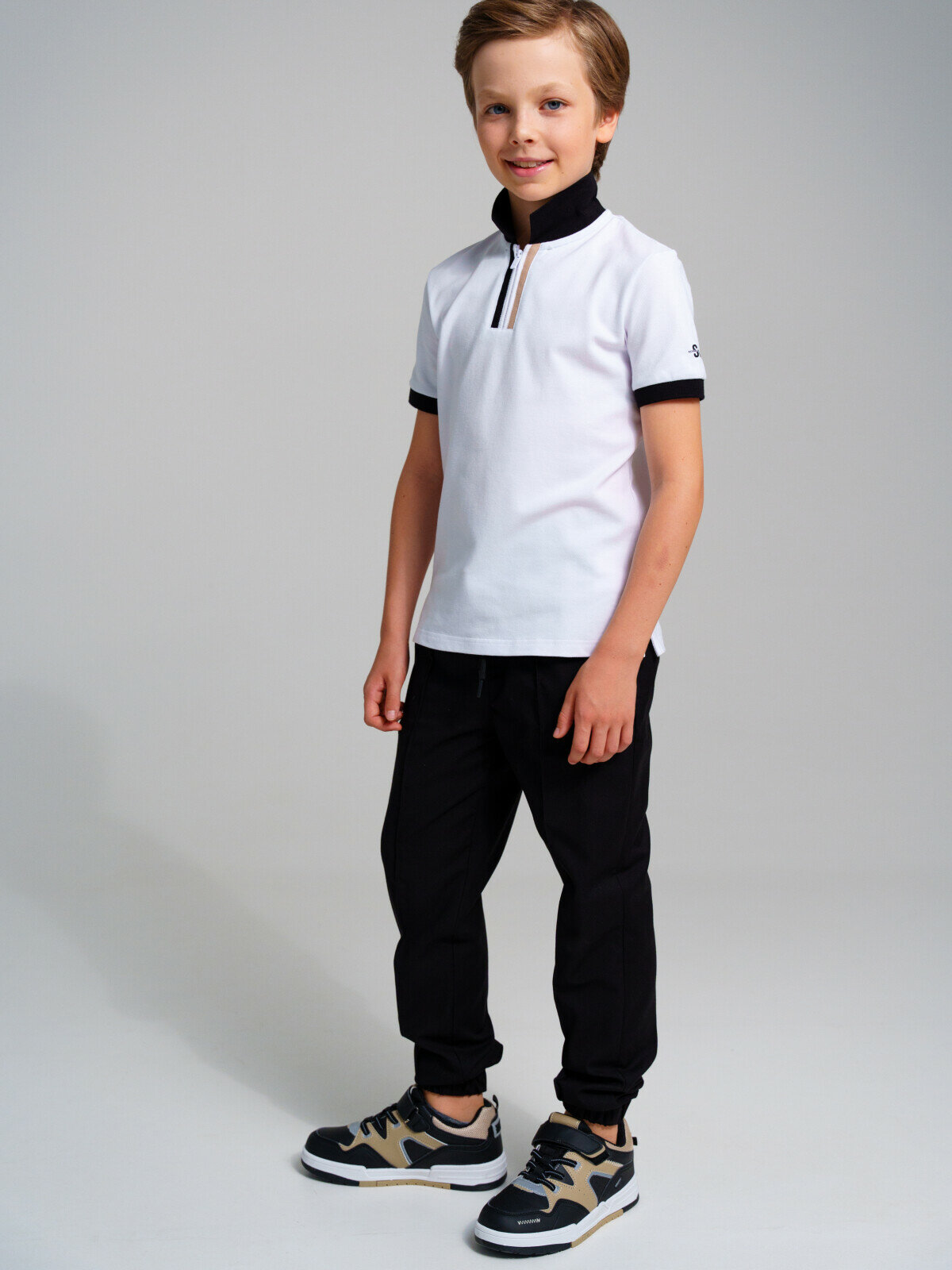 Футболка-поло для мальчика PlayToday, размер 134, бежевый 1 799 ₽