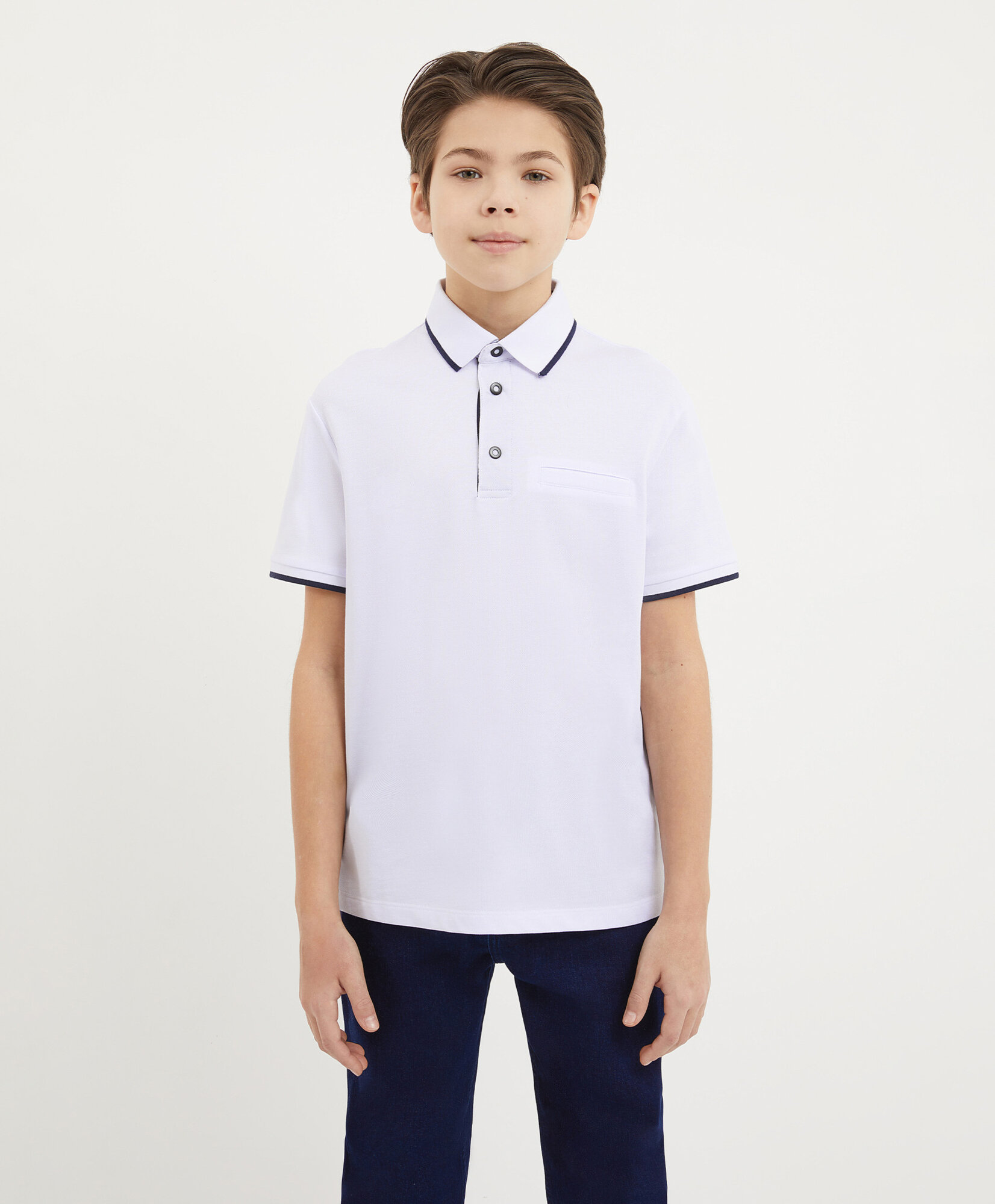 Поло с коротким рукавом из пике белое для мальчика Gulliver, р. 152, мод. 224GSBJC1405 4 799 ₽