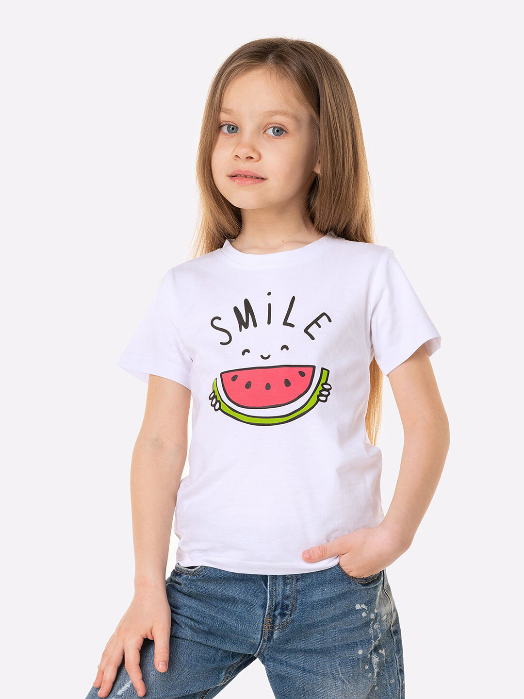 Футболка для девочек и подростков с принтом детская одежда HappyFox, HF66031D размер 110, цвет арбуз.белый 523 ₽
