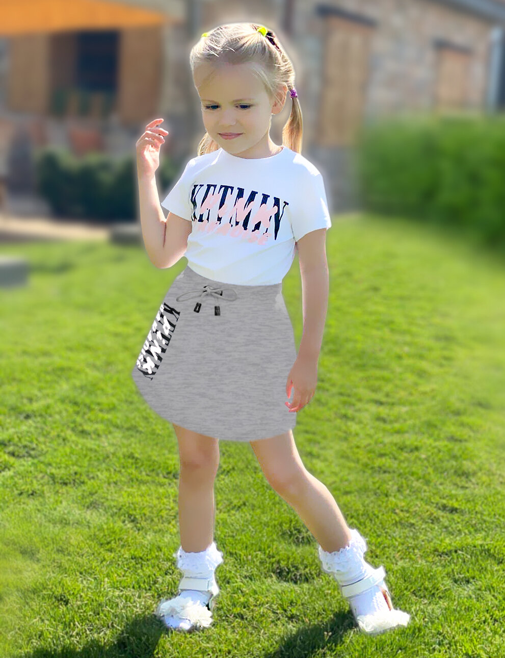 Юбка KETMIN детская трикотажная футер PREMIUM LINE, размер 128, серый, коричневый, мультиколор 1 015 ₽