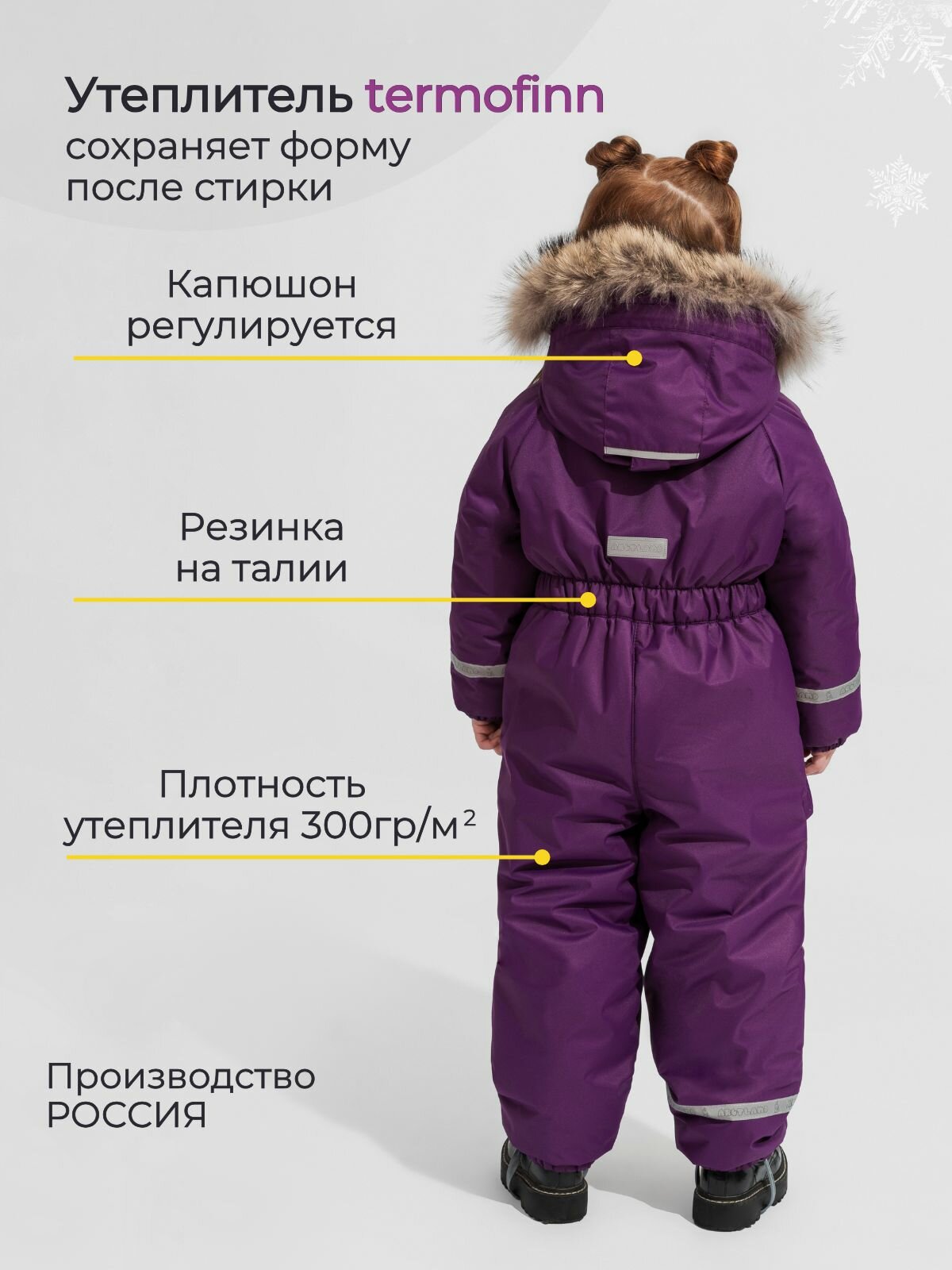 Комбинезон ARCTLAND, зимний, размер 98 (56), фиолетовый