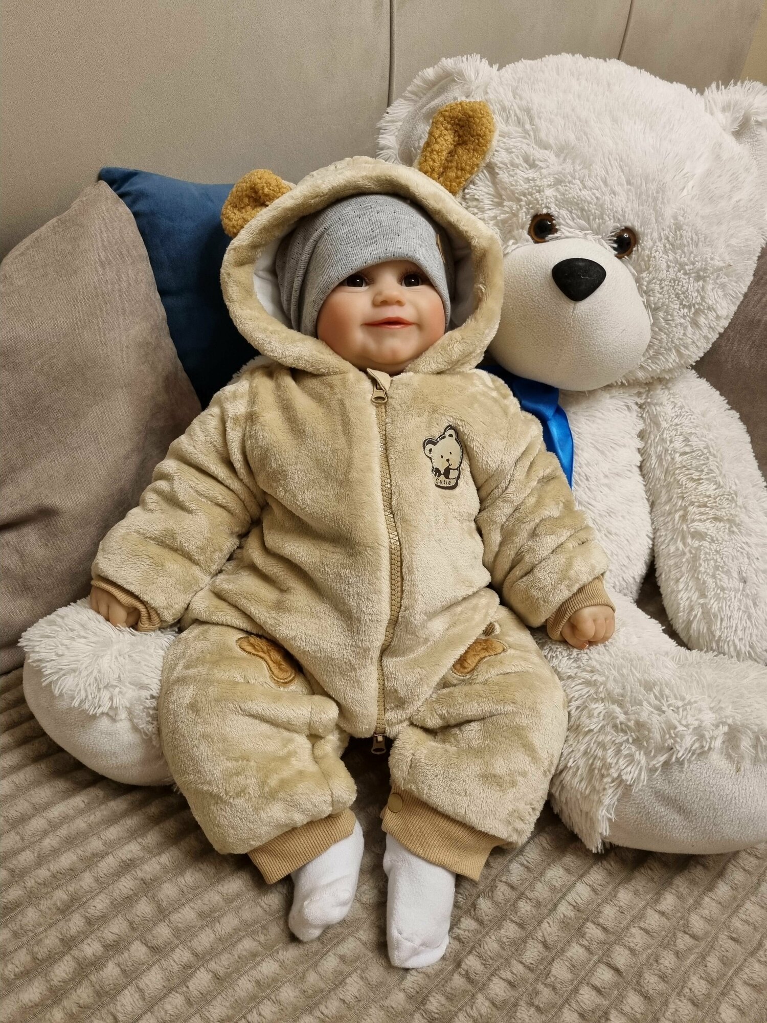 Комбинезон с утеплителем для новорожденного, плюшевый для малышей, демисезонный - Бежевый - размер 80 (G4) информация: