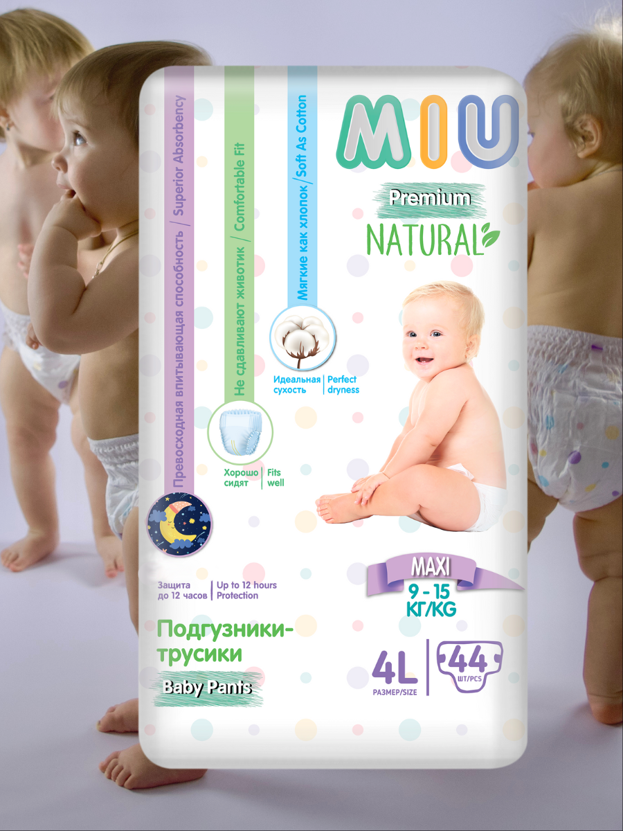 Подгузники-трусики MIU Premium 4L Maxi (9-15кг) 44шт Senso информация: