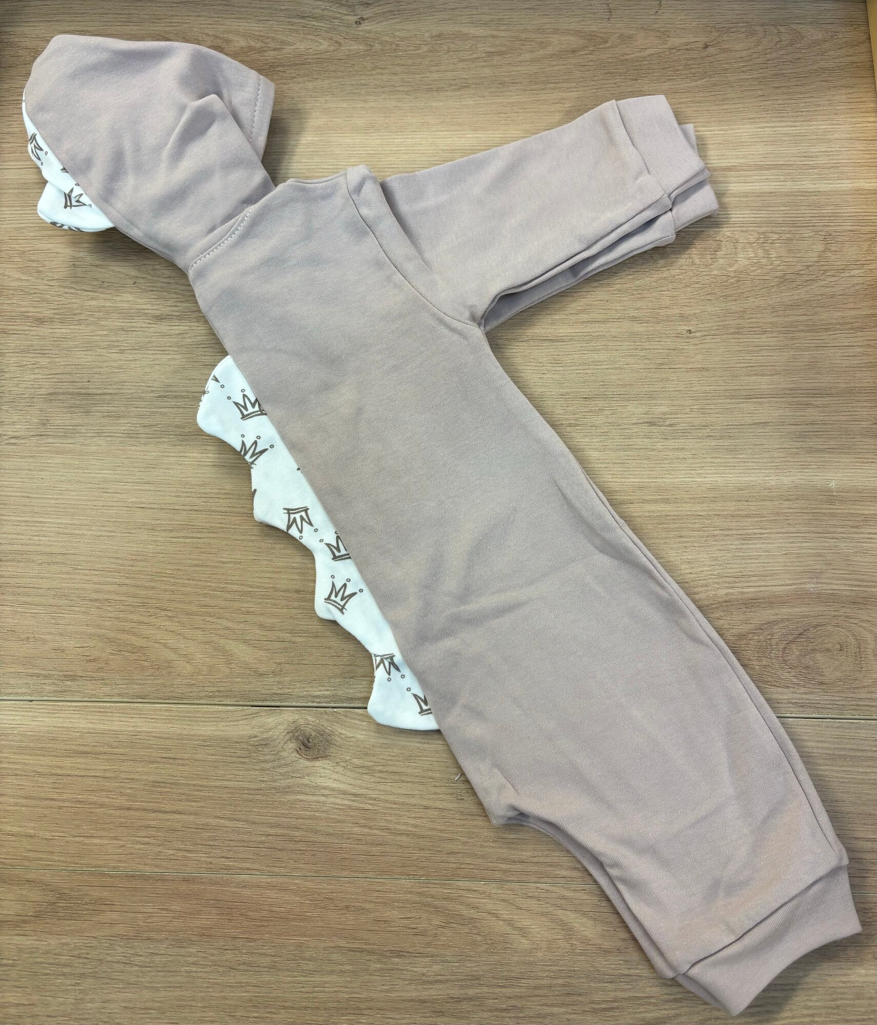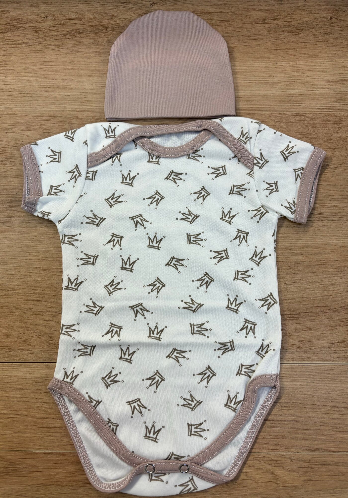 Комплект одежды на лето для выписки бежевый с коронами информация: