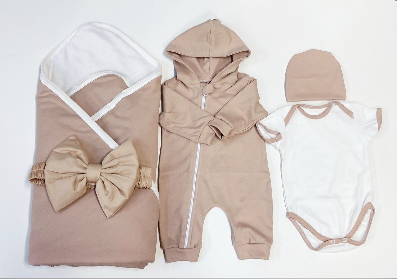 Комплект одежды на лето для выписки из роддома бежево-кремовый информация: