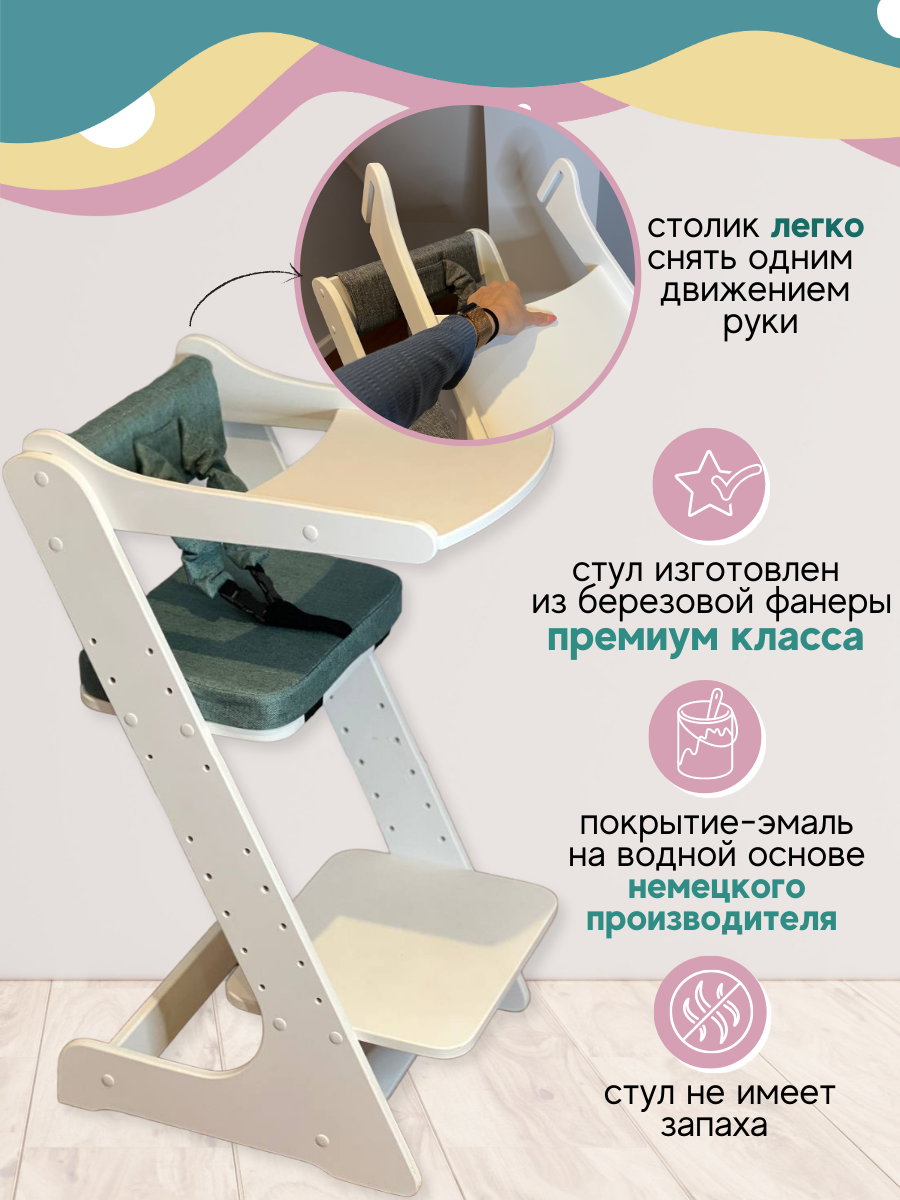 10 цен на Растущий стул Панда со столиком детский с подушками зелеными с ремнями