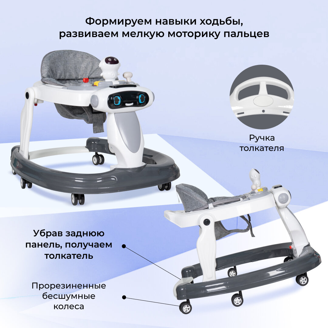 Ходунки детские Farfello K09, для детей от 7 до 18 месяцев, до 12 кг, игровая панель, цвет серый информация: