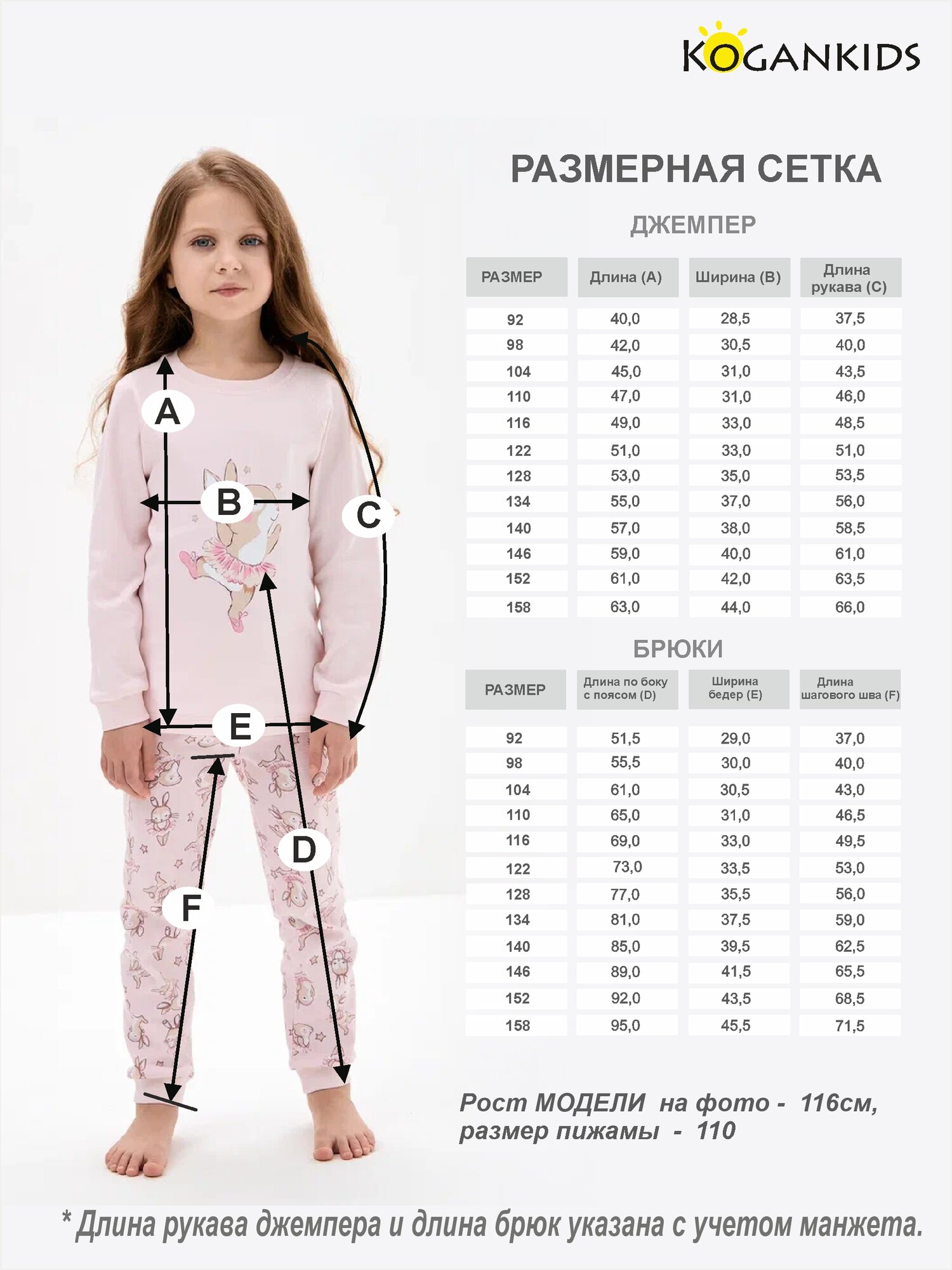 Пижама для девочки,KOGANKIDS,пудровый набивка зайчики, 140 / 10 лет информация: